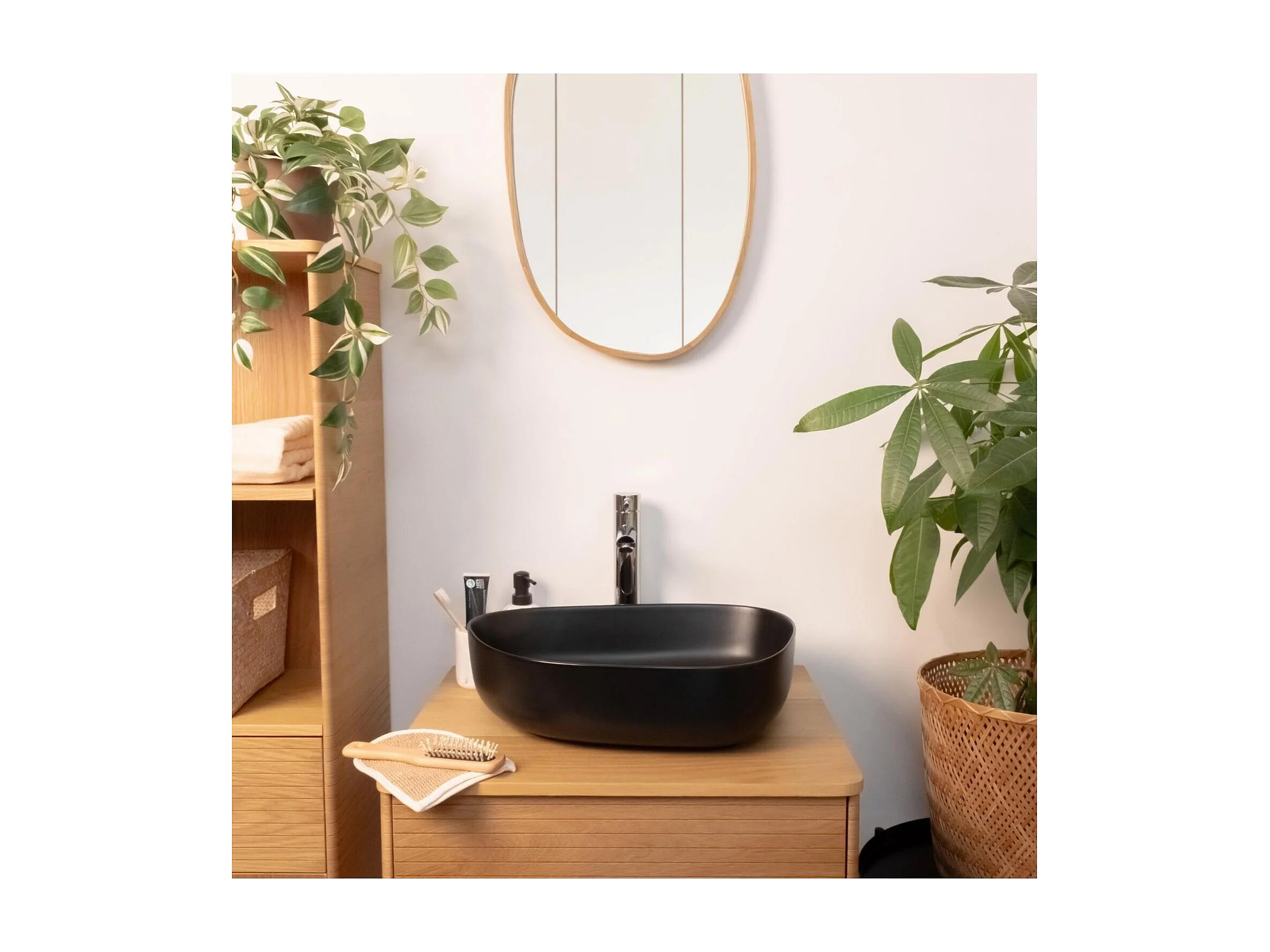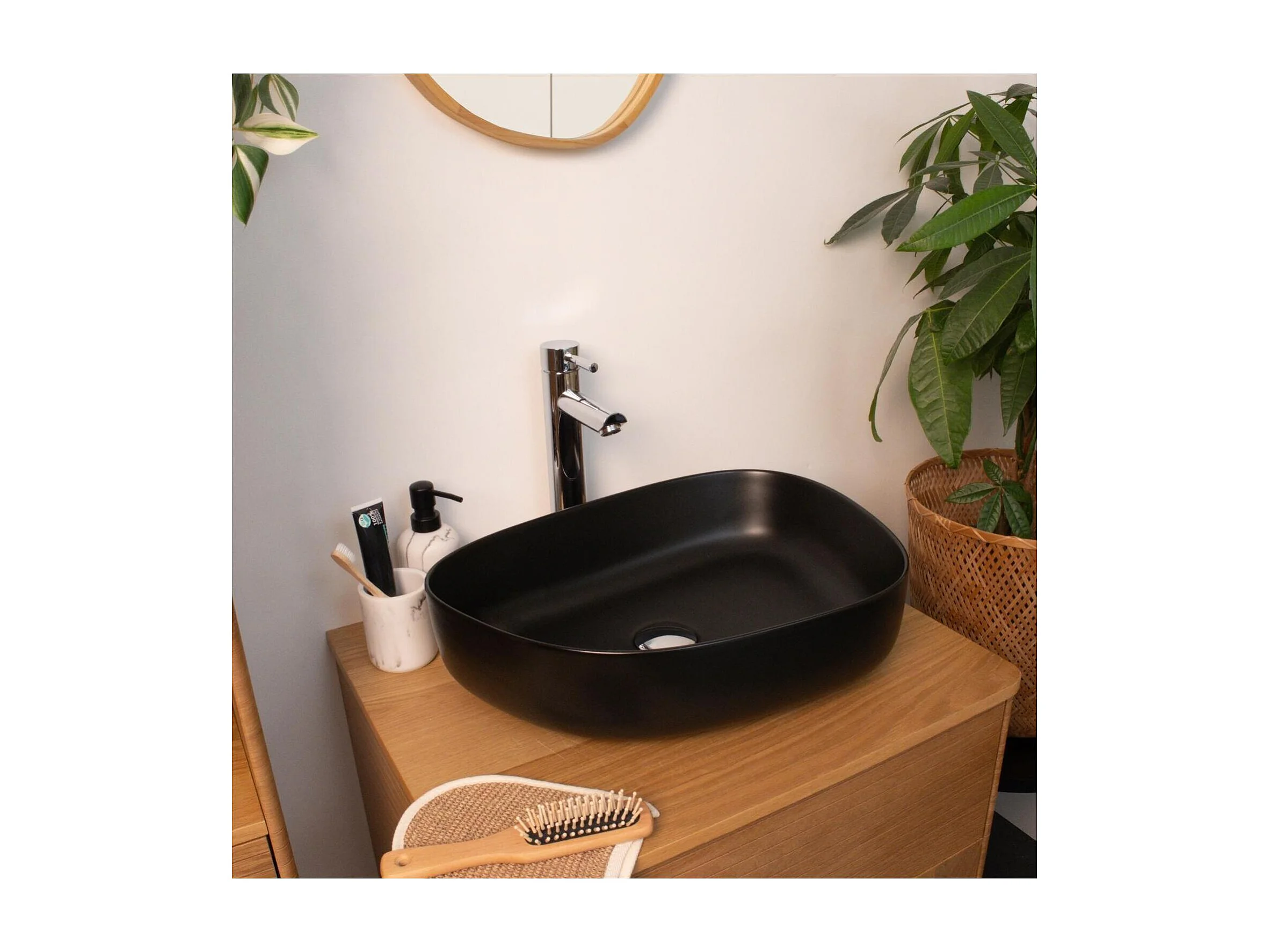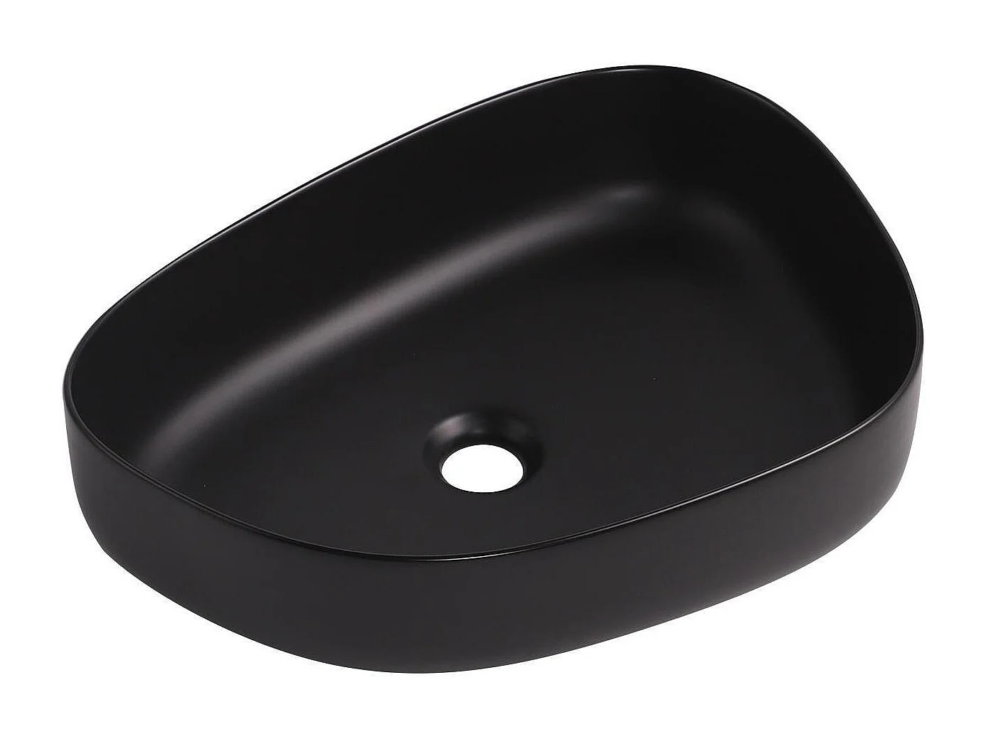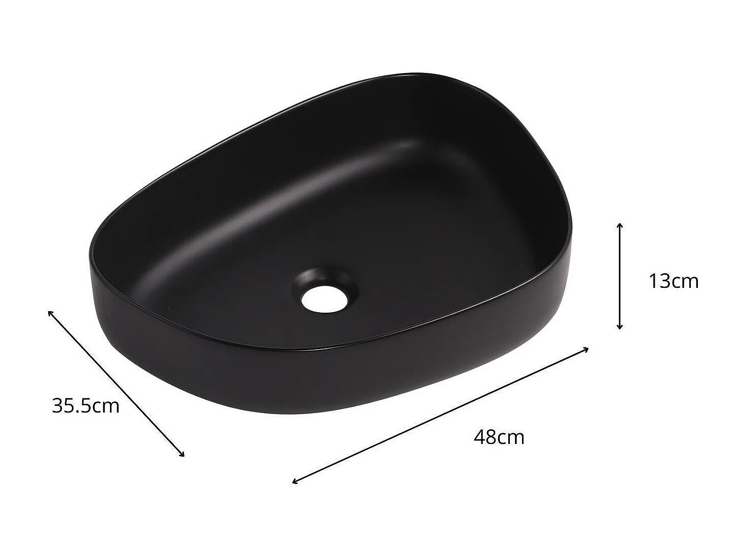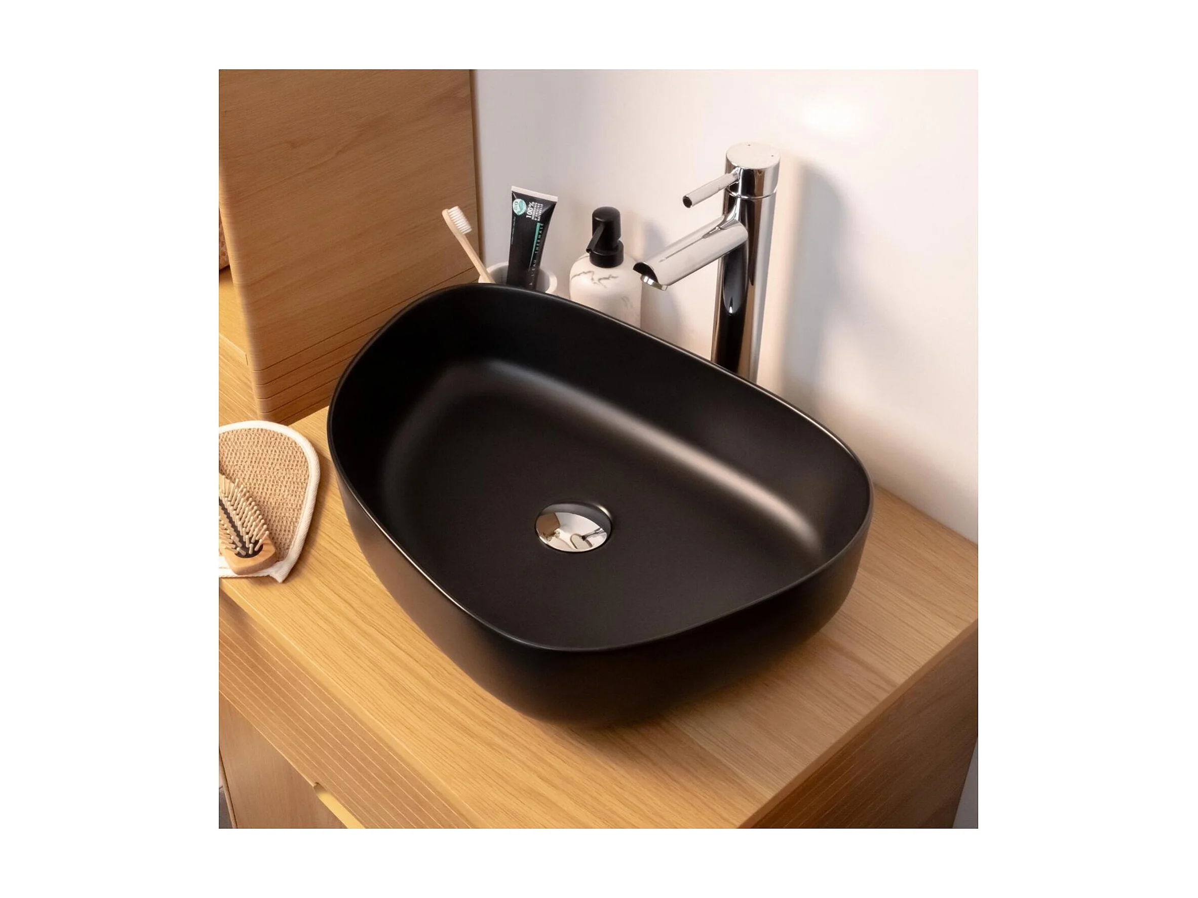 ORION Aufsatzwaschbecken aus schwarzer Keramik in Kieselform, 48 x 35,5 cm