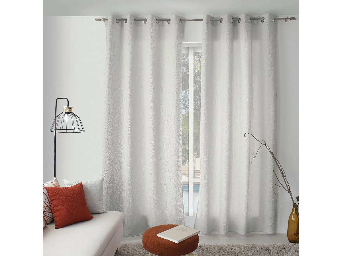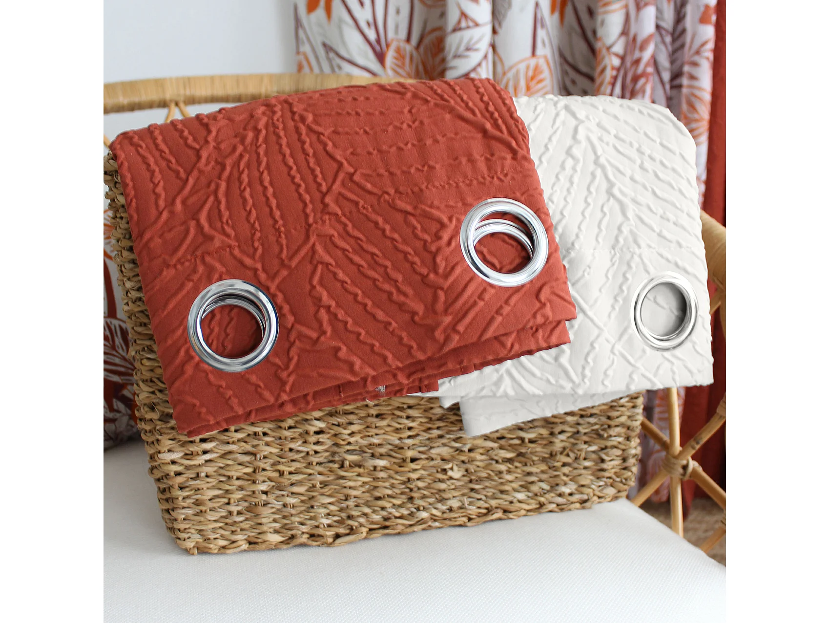 Ösenvorhang mit Blattmuster und Waffeloptik 135 x 240 cm