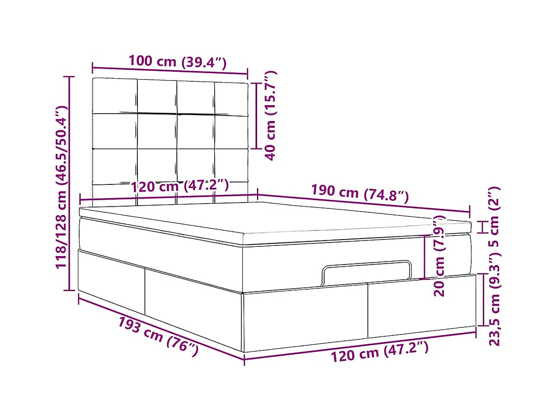 Ottoman-Bett mit Matratze Dunkelbraun 120x190 cm Stoff