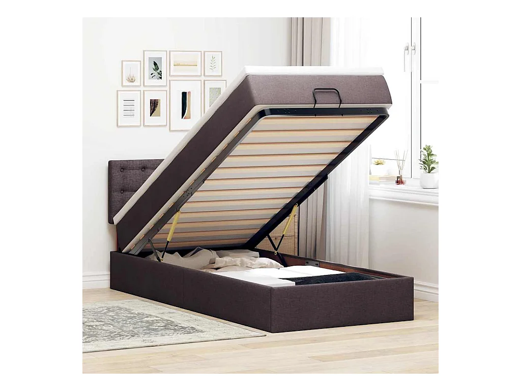 Ottoman-Bett mit Matratze Dunkelbraun 90x200 cm Stoff