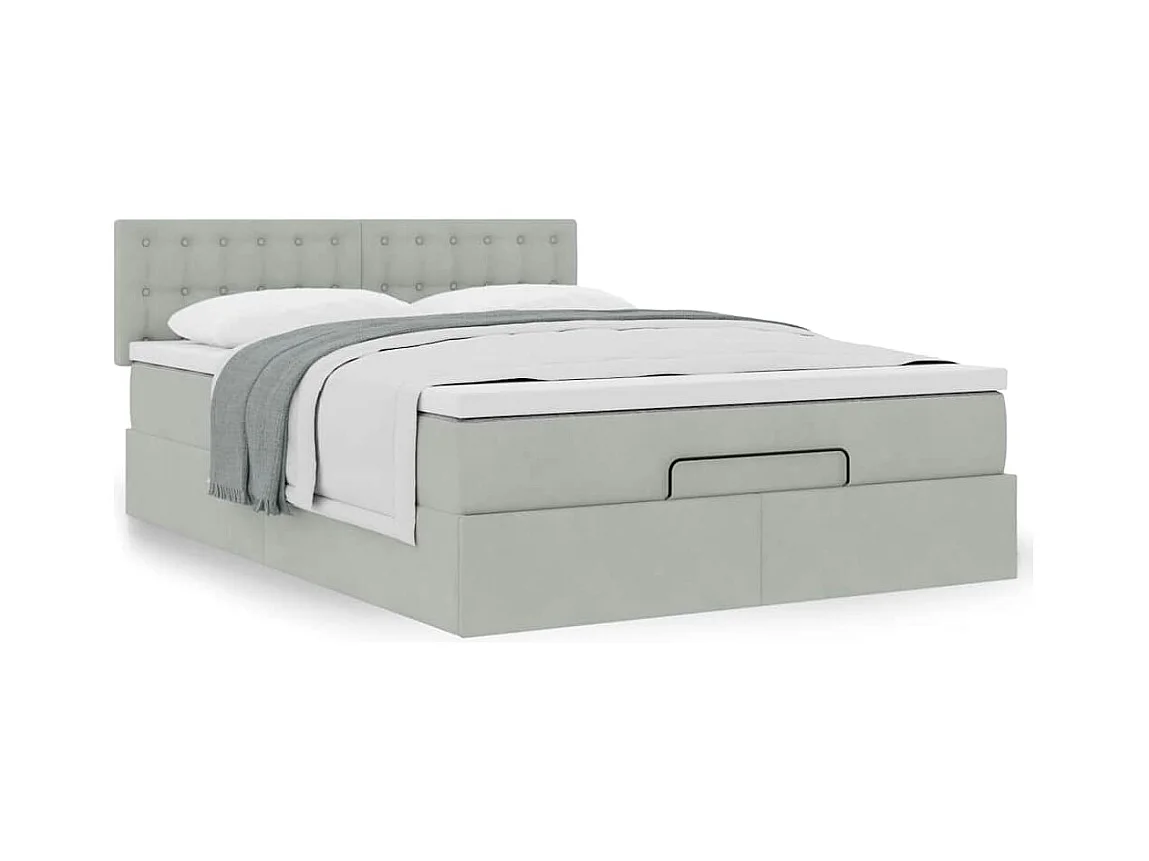 Ottoman-Bett mit Matratze Hellgrau 140x200 cm Samt