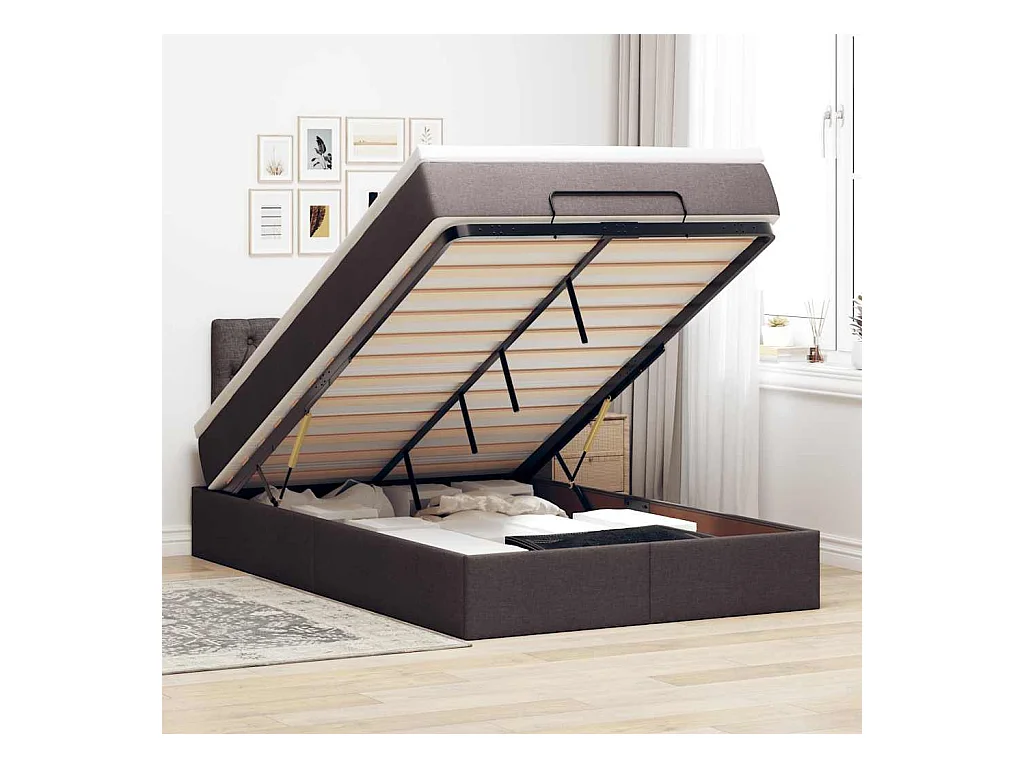 Ottoman-Bett mit Matratze & LEDs Dunkelbraun 120x190 cm Stoff