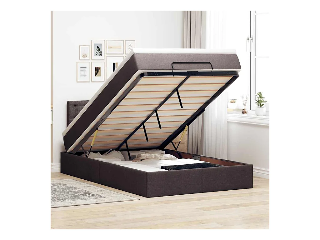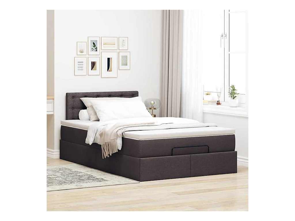 Ottoman-Bett mit Matratze & LEDs Dunkelbraun 120x190 cm Stoff