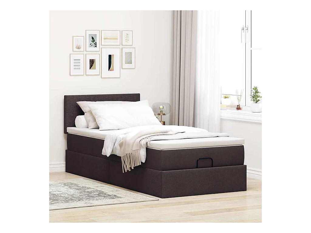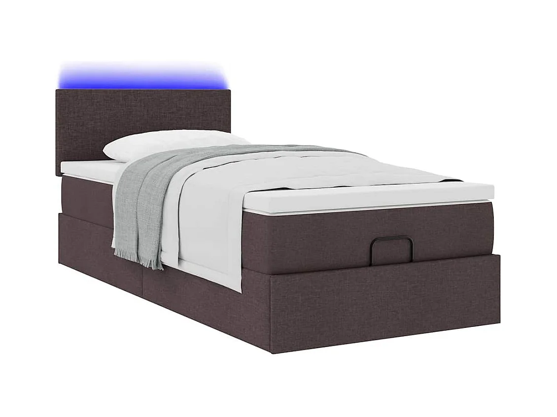 Ottoman-Bett mit Matratze & LEDs Dunkelbraun 90x190 cm Stoff