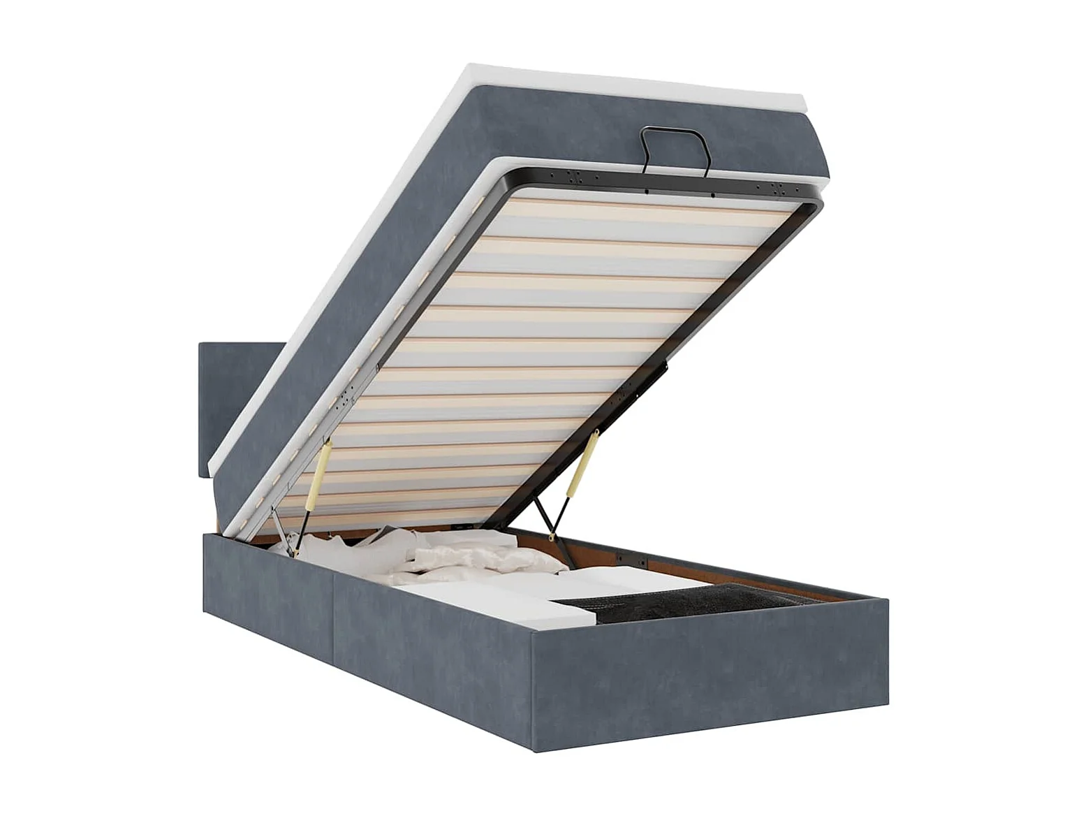 Ottoman-Bett mit Matratze & LEDs Dunkelgrau 100x200 cm Samt