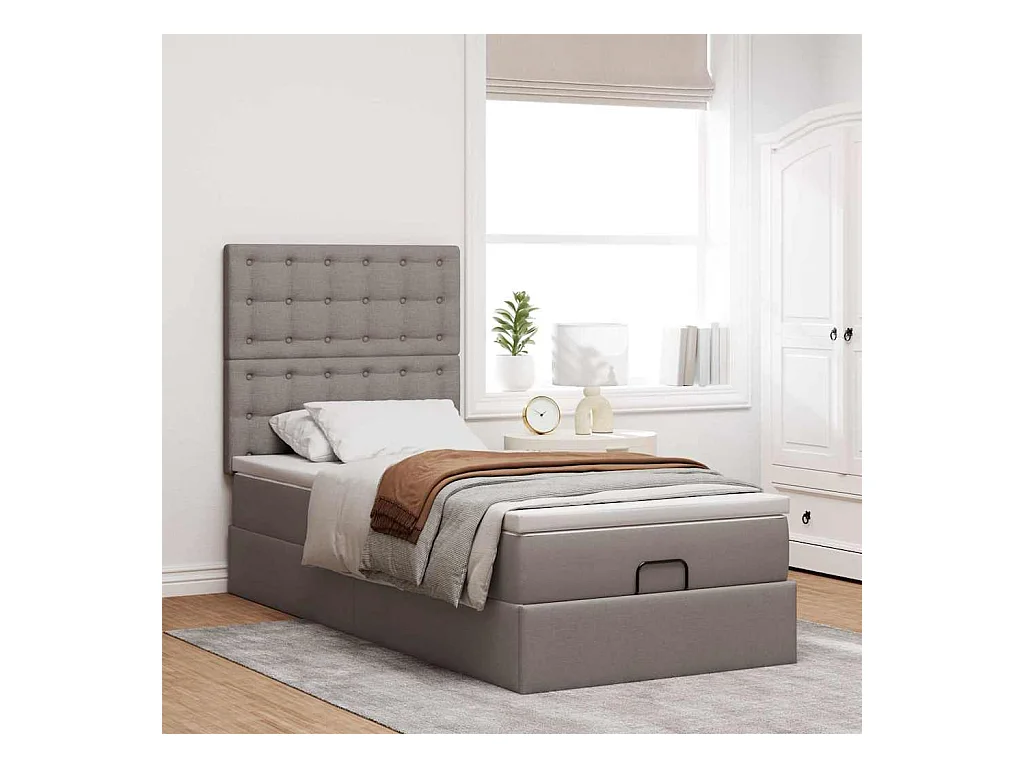 Ottoman-Bett mit Matratze & LEDs Taupe 100x200 cm Stoff