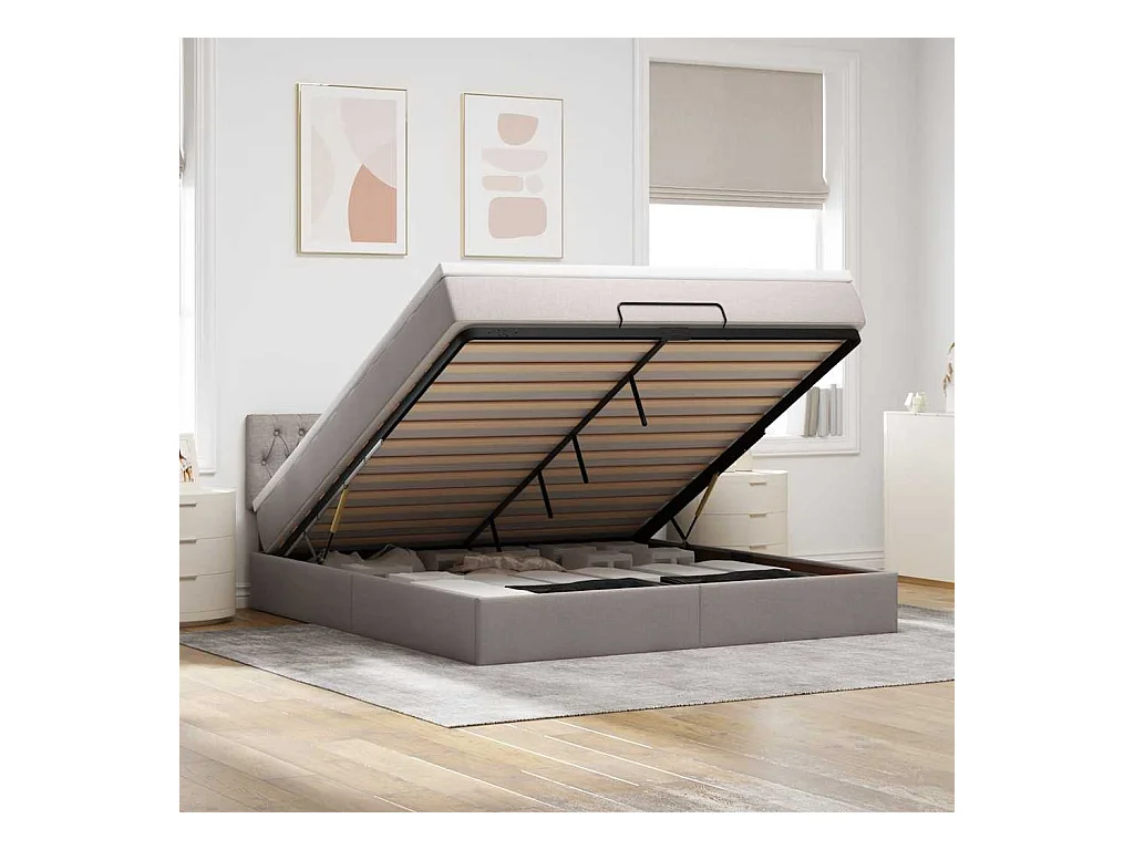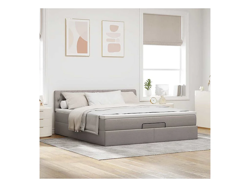 Ottoman-Bett mit Matratze & LEDs Taupe 160x200 cm Stoff