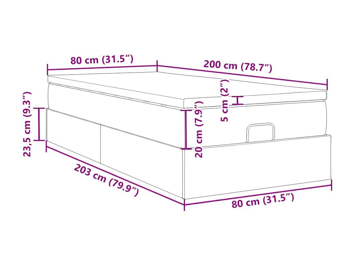 Ottoman-Bett mit Matratze Schwarz 80x200 cm Samt