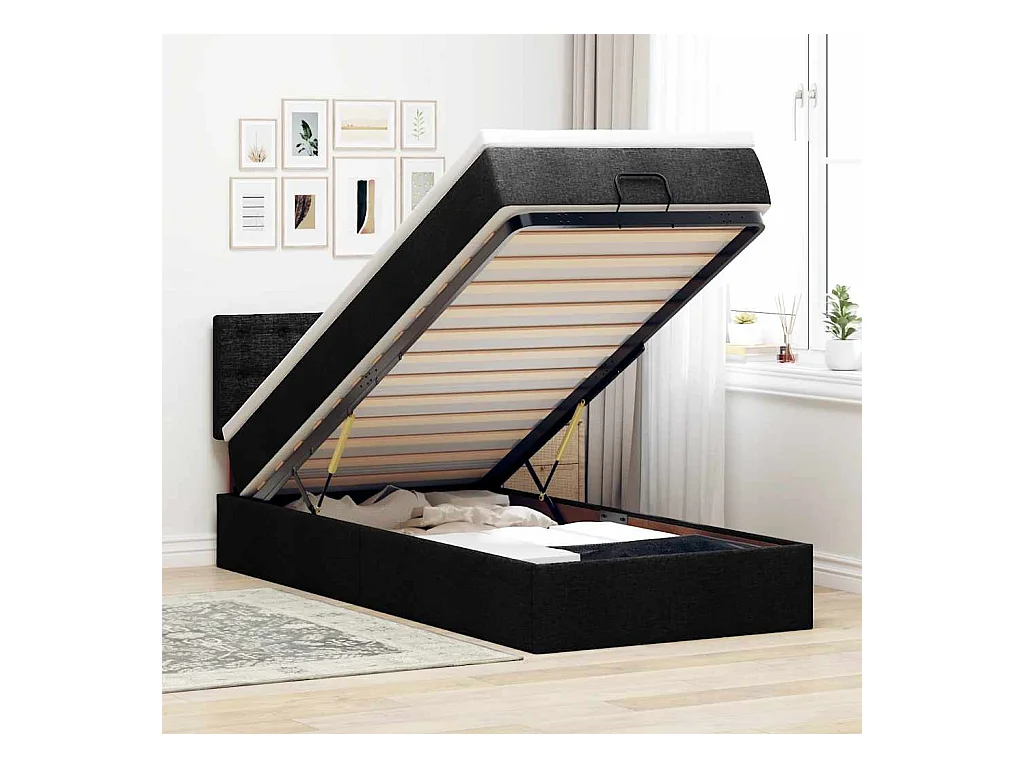 Ottoman-Bett mit Matratze Schwarz 90x190 cm Stoff