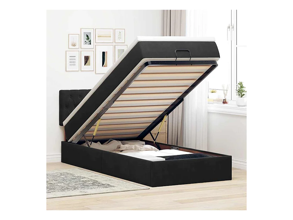 Ottoman-Bett mit Matratze Schwarz 90x200 cm Samt