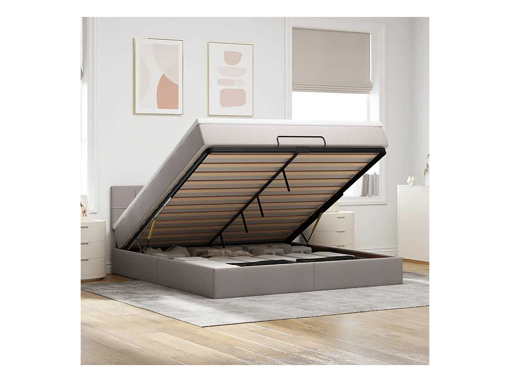 Ottoman-Bett mit Matratze Taupe 180x200 cm Stoff