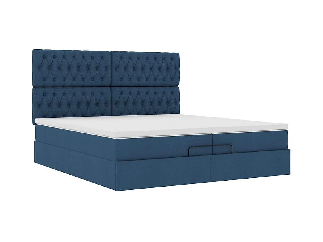 Ottoman-Bett mit Matratzen & LEDs Blau 200x200 cm Stoff
