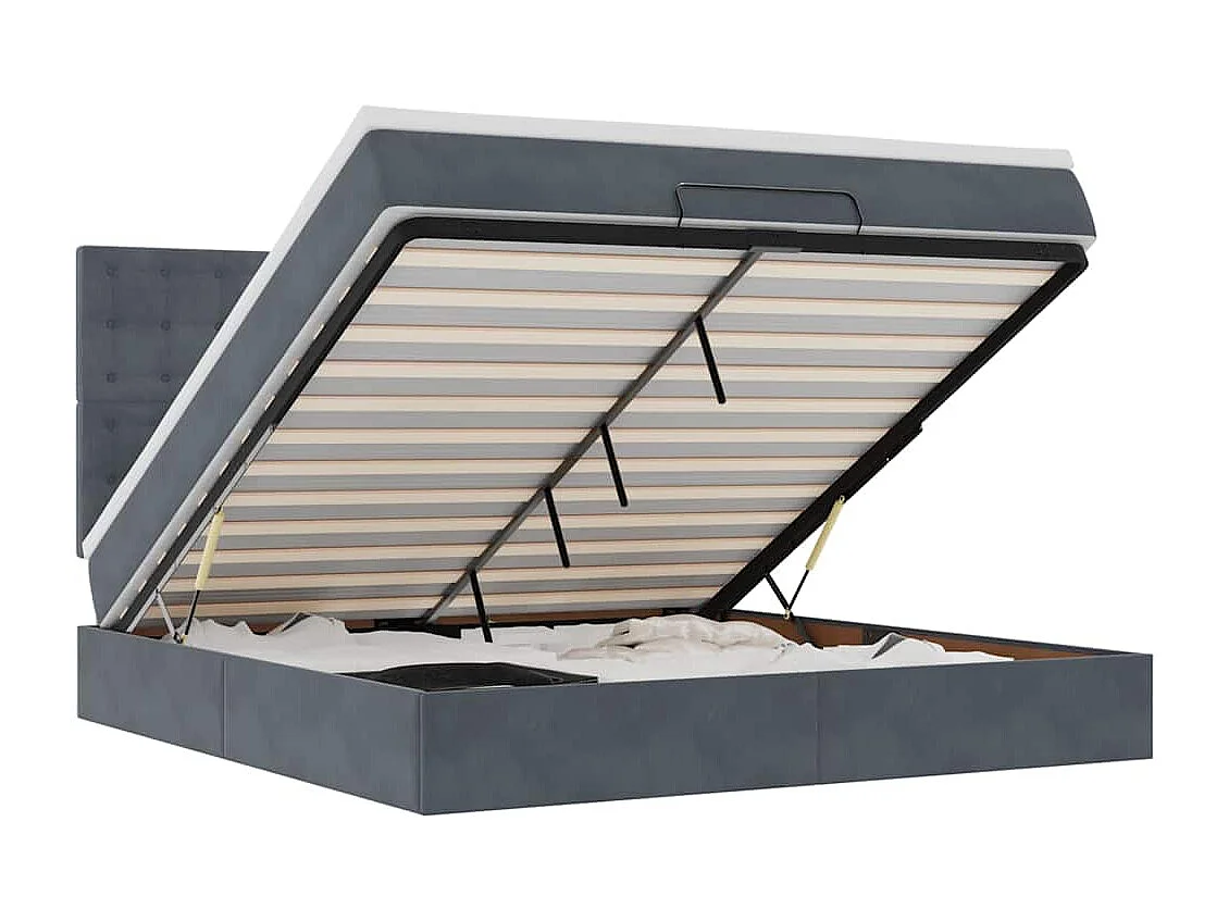 Ottoman-Bett mit Matratzen & LEDs Dunkelgrau 160x200 cm Samt