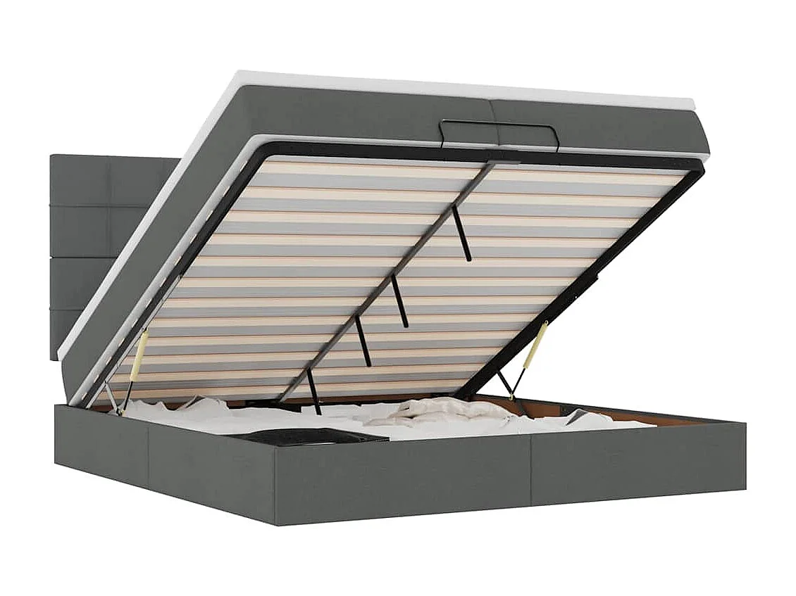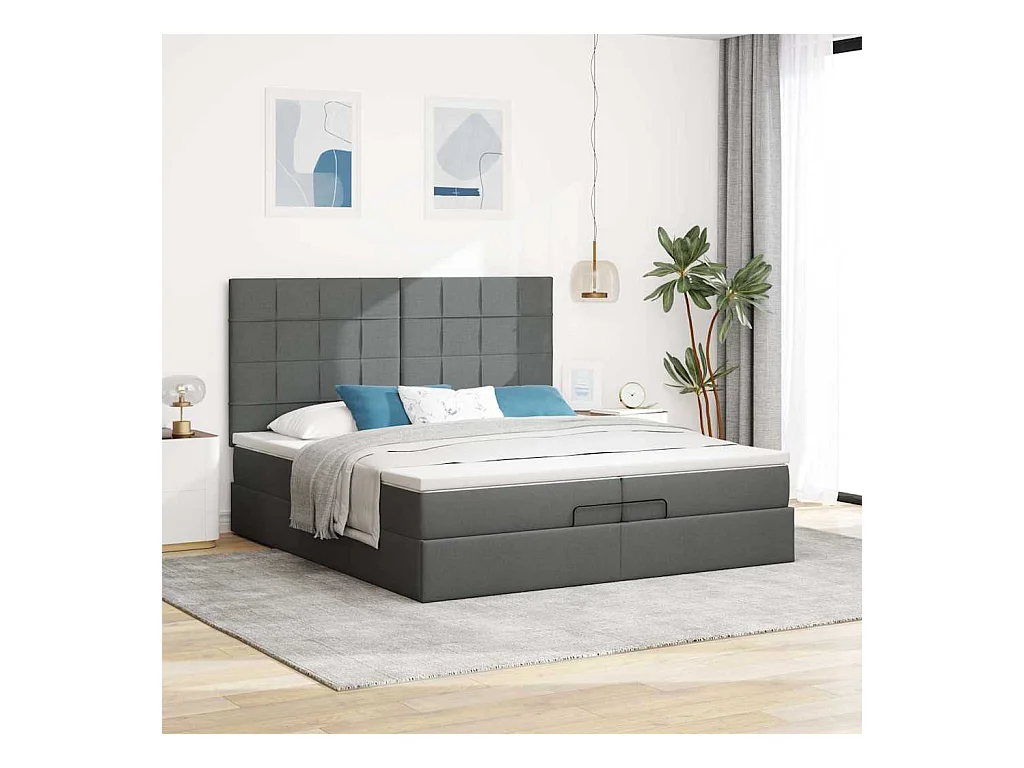 Ottoman-Bett mit Matratzen & LEDs Dunkelgrau 200x200 cm Stoff