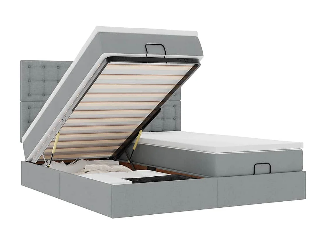 Ottoman-Bett mit Matratzen & LEDs Hellgrau 180x200 cm Stoff