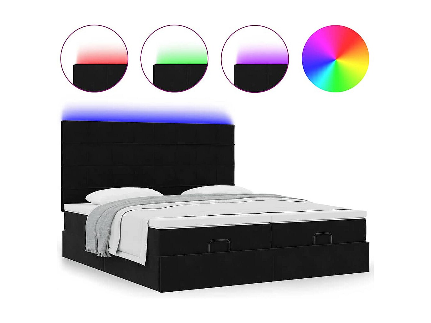 Ottoman-Bett mit Matratzen & LEDs Schwarz 160x200 cm Samt