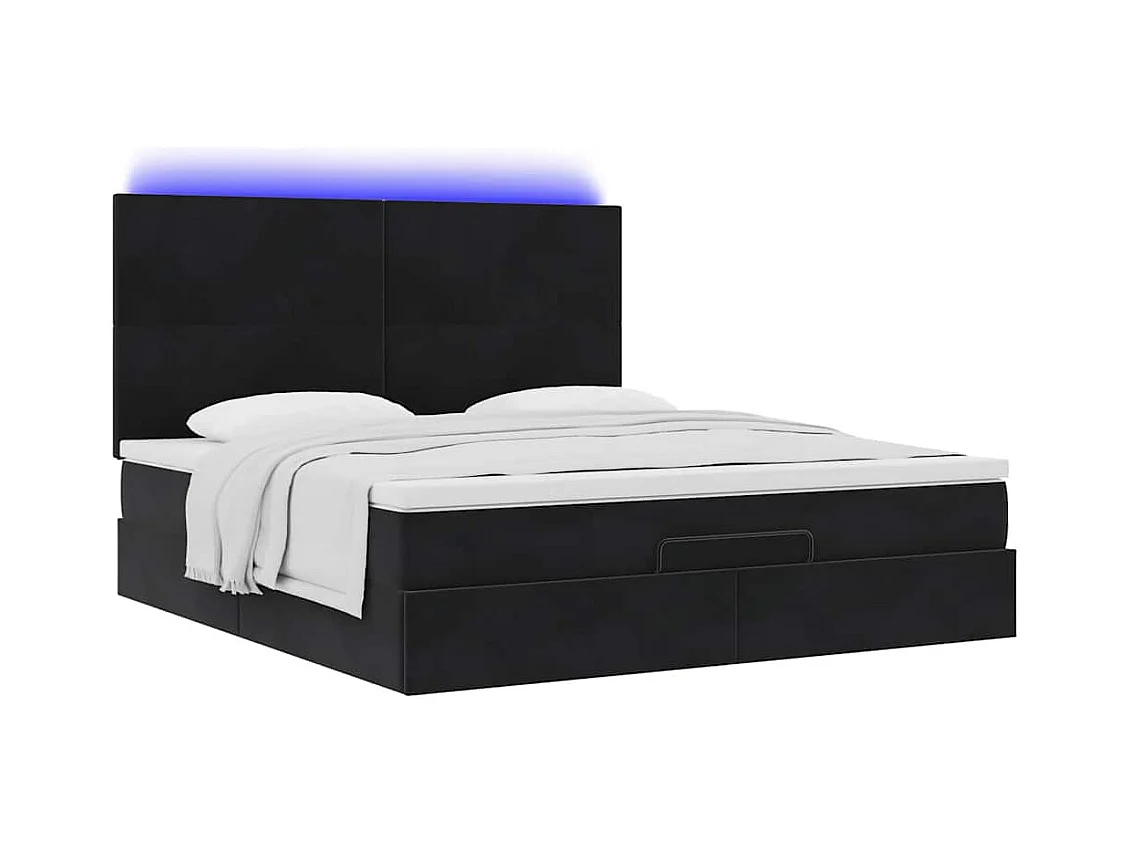 Ottoman-Bett mit Matratzen & LEDs Schwarz 160x200 cm Samt