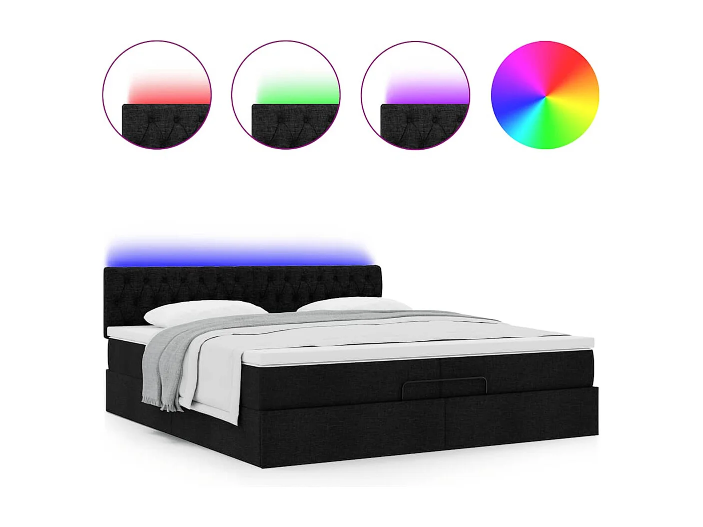 Ottoman-Bett mit Matratzen & LEDs Schwarz 200x200 cm Stoff