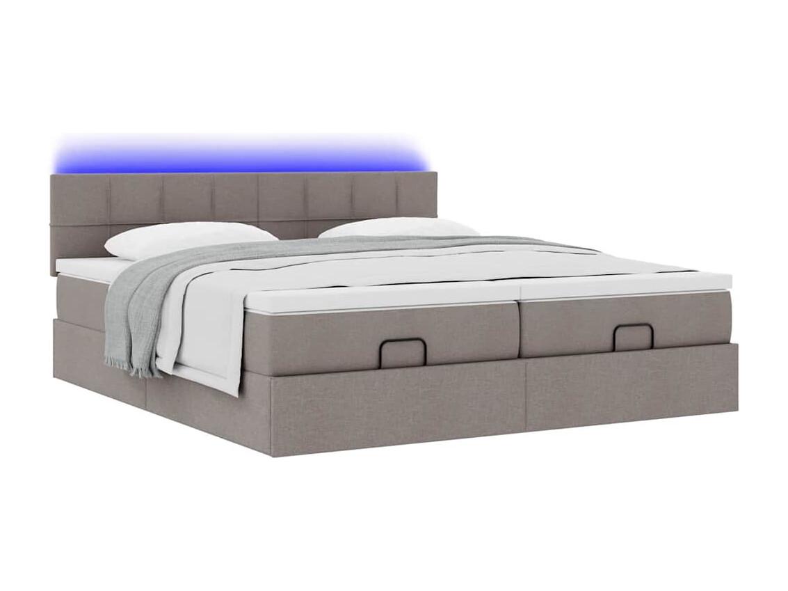 Ottoman-Bett mit Matratzen & LEDs Taupe 200x200 cm Stoff
