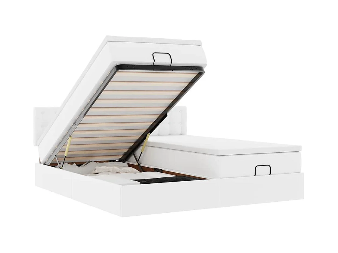 Ottoman-Bett mit Matratzen & LEDs Weiß 180x200 cm Kunstleder