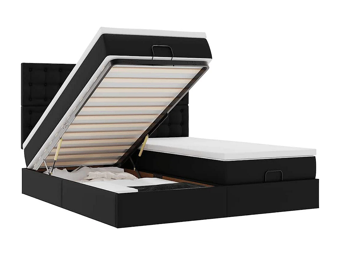 Ottoman-Bett mit Matratzen Schwarz 160x200 cm Kunstleder