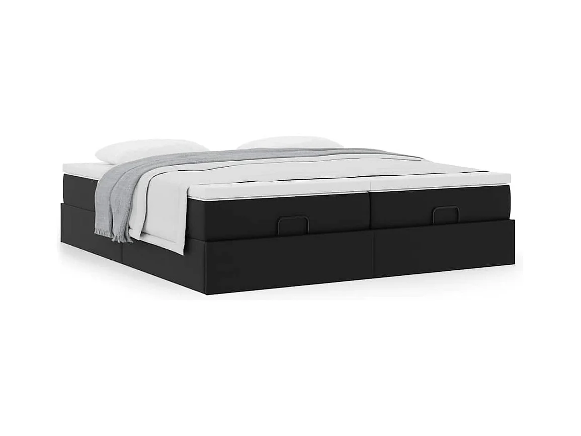 Ottoman-Bett mit Matratzen Schwarz 180x200 cm Kunstleder