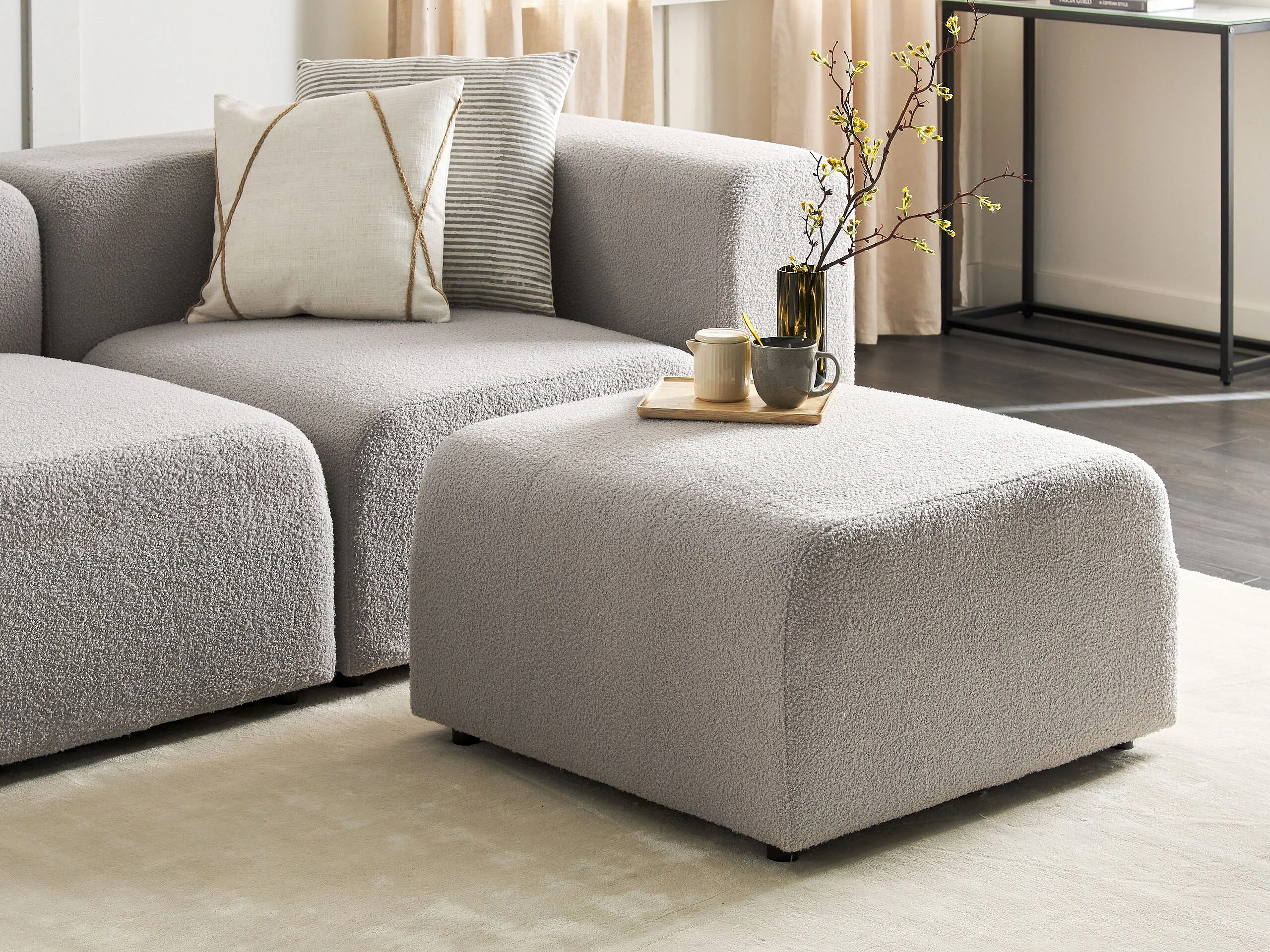 Ottomane Bouclé grau rechteckig 74 x 75 cm modern dick gepolstert Falsterbo