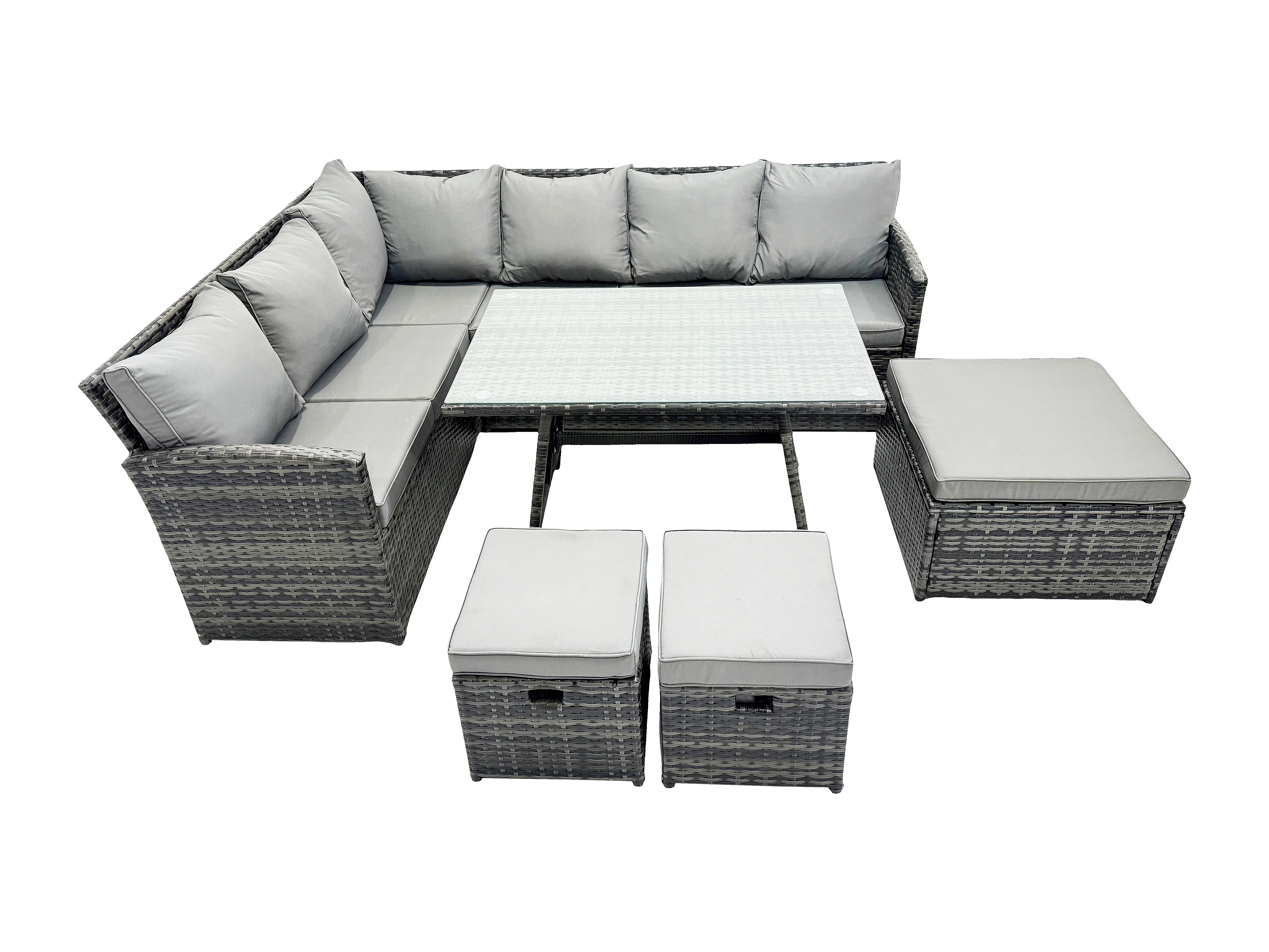 Outdoor Gartenmöbel-Set Ecksofa Set mit Länglicher Esstisch 3 Fußhockern 9 Sitzer Dunkelgrau gemischt