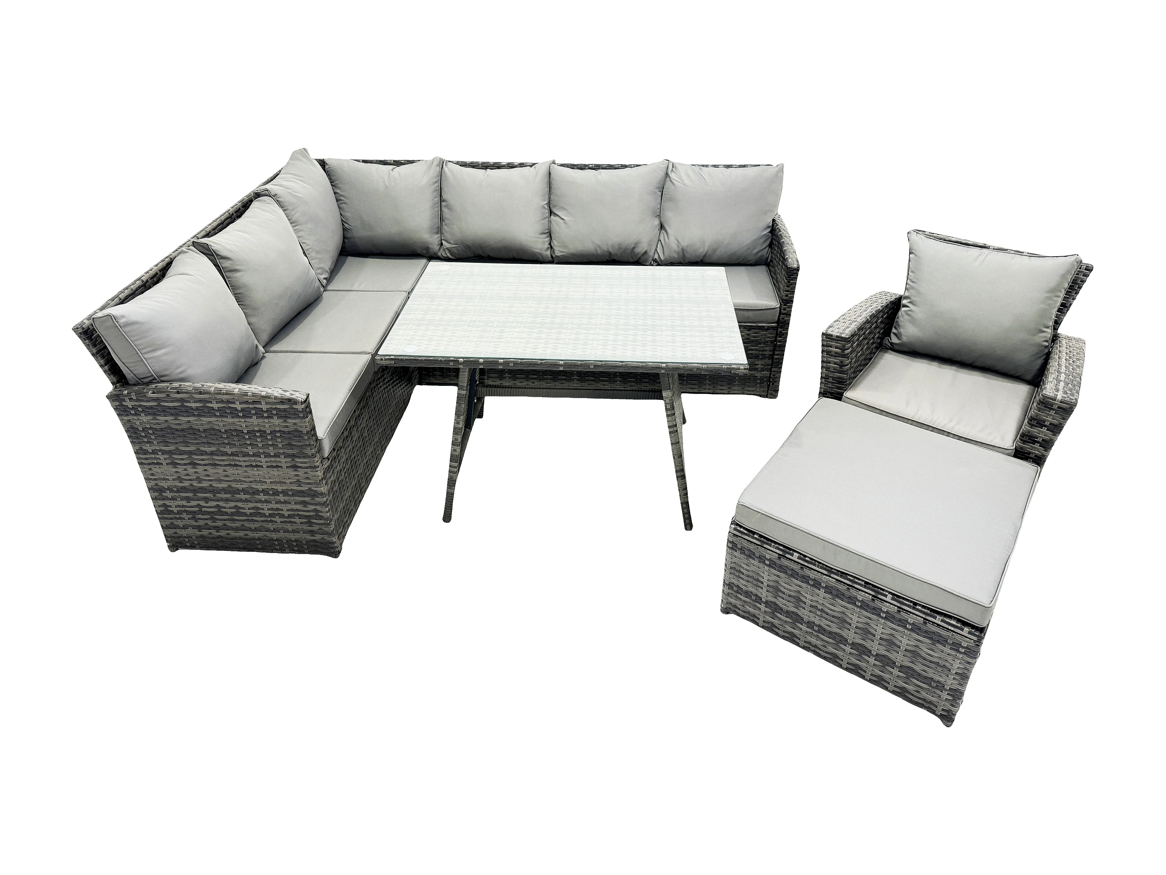 Outdoor Gartenmöbel-Set Ecksofa Set mit Länglicher Esstisch Großer Fußhocker Sesseln Dunkelgrau gemischt