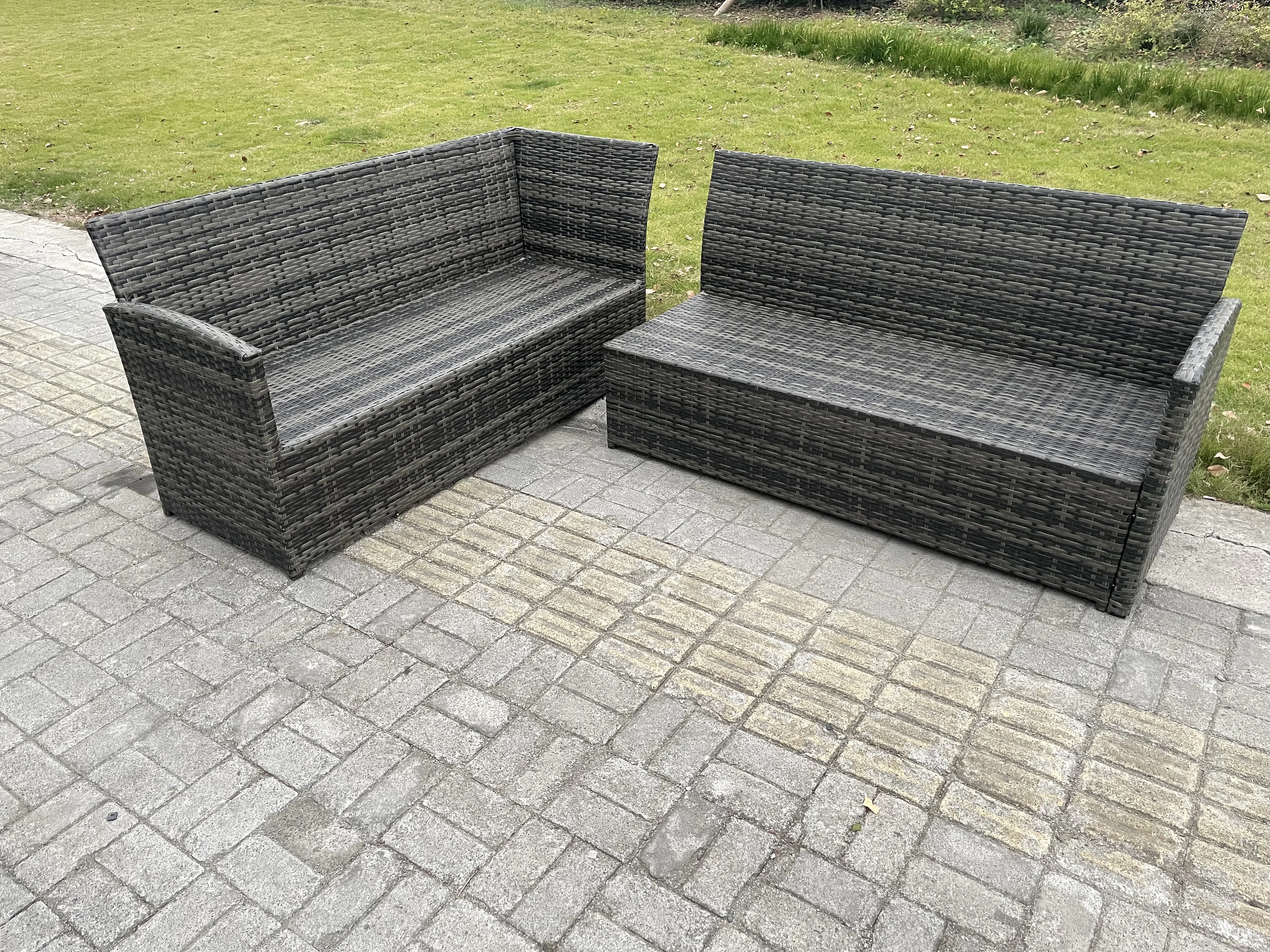Outdoor Gartenmöbel-Set Ecksofa Set mit Länglicher Esstisch Sesseln 7 Sitzer Dunkelgrau gemischt