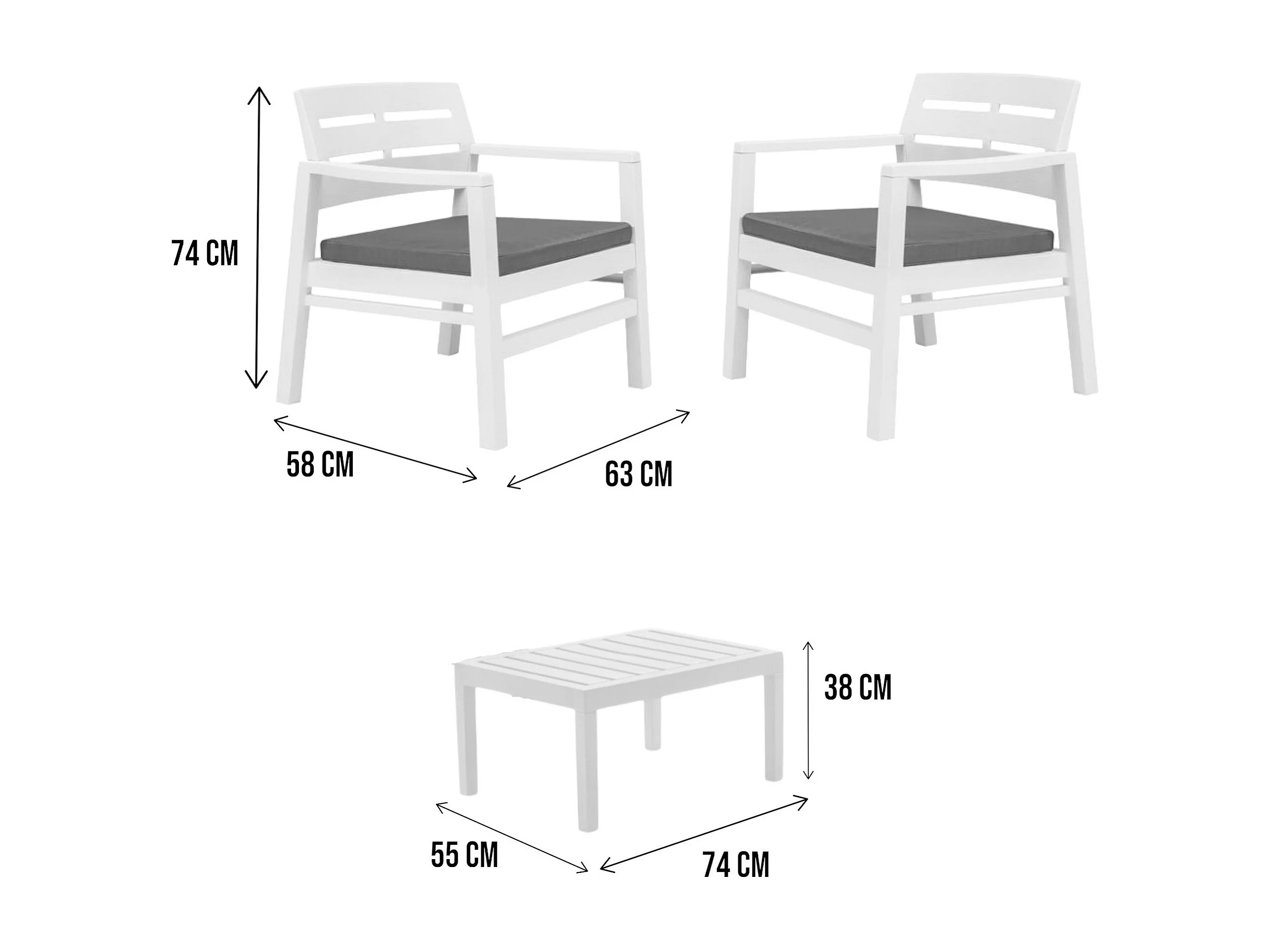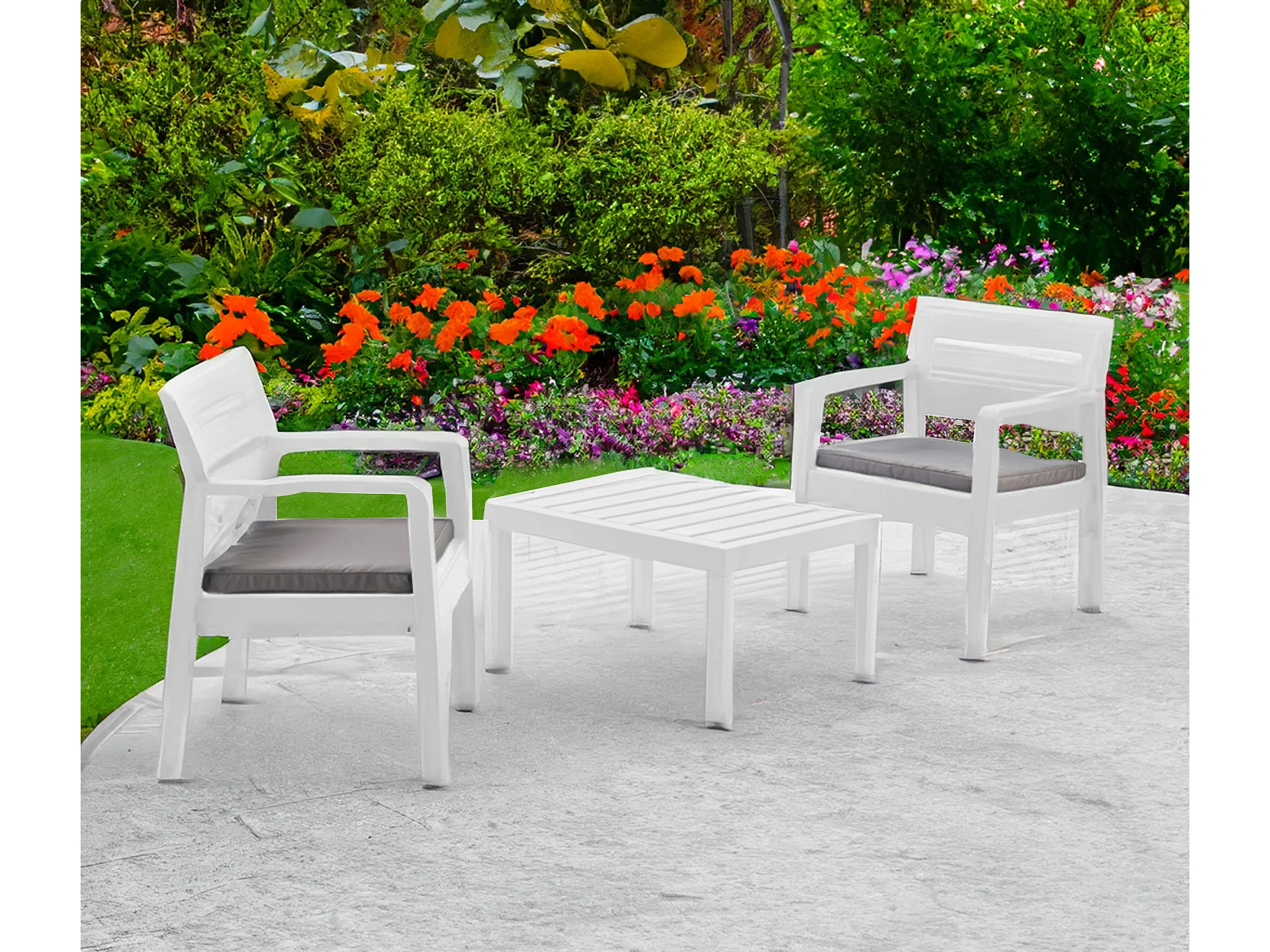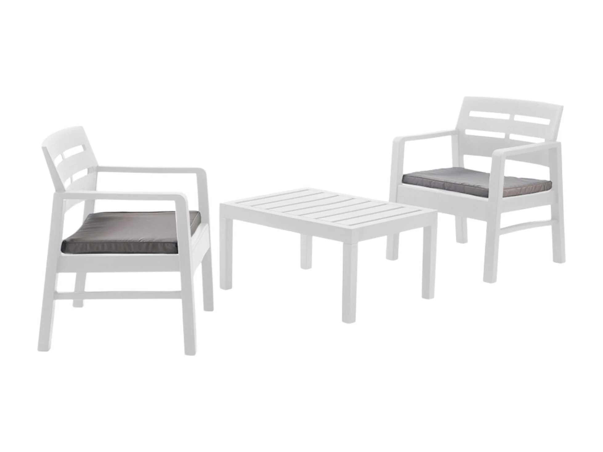 Outdoor-Lounge-Set Benevento, Gartengarnitur mit 2 Sesseln und 1 Couchtisch, Innen- und Außensitzgruppe mit Kissen, 100 % Made in Italy, Weiß