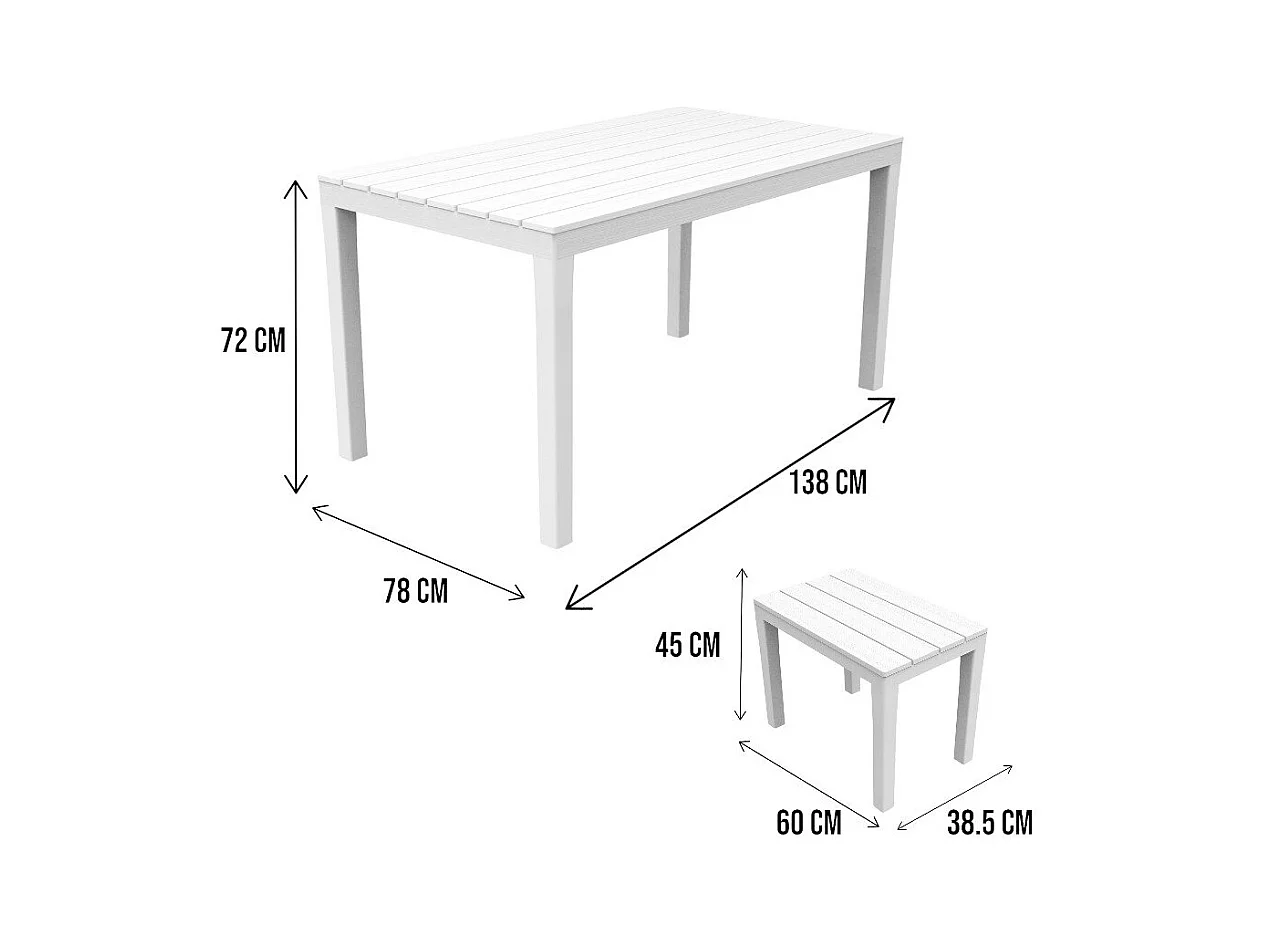 Outdoor-Lounge-Set Dmascar, Gartenset mit 1 rechteckigem Tisch und 4 Bänken, Indoor- und Outdoor-Set für Pic Nic, 100 % Made in Italy, Weiß