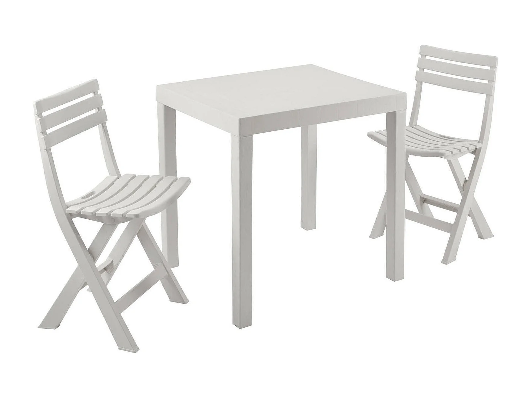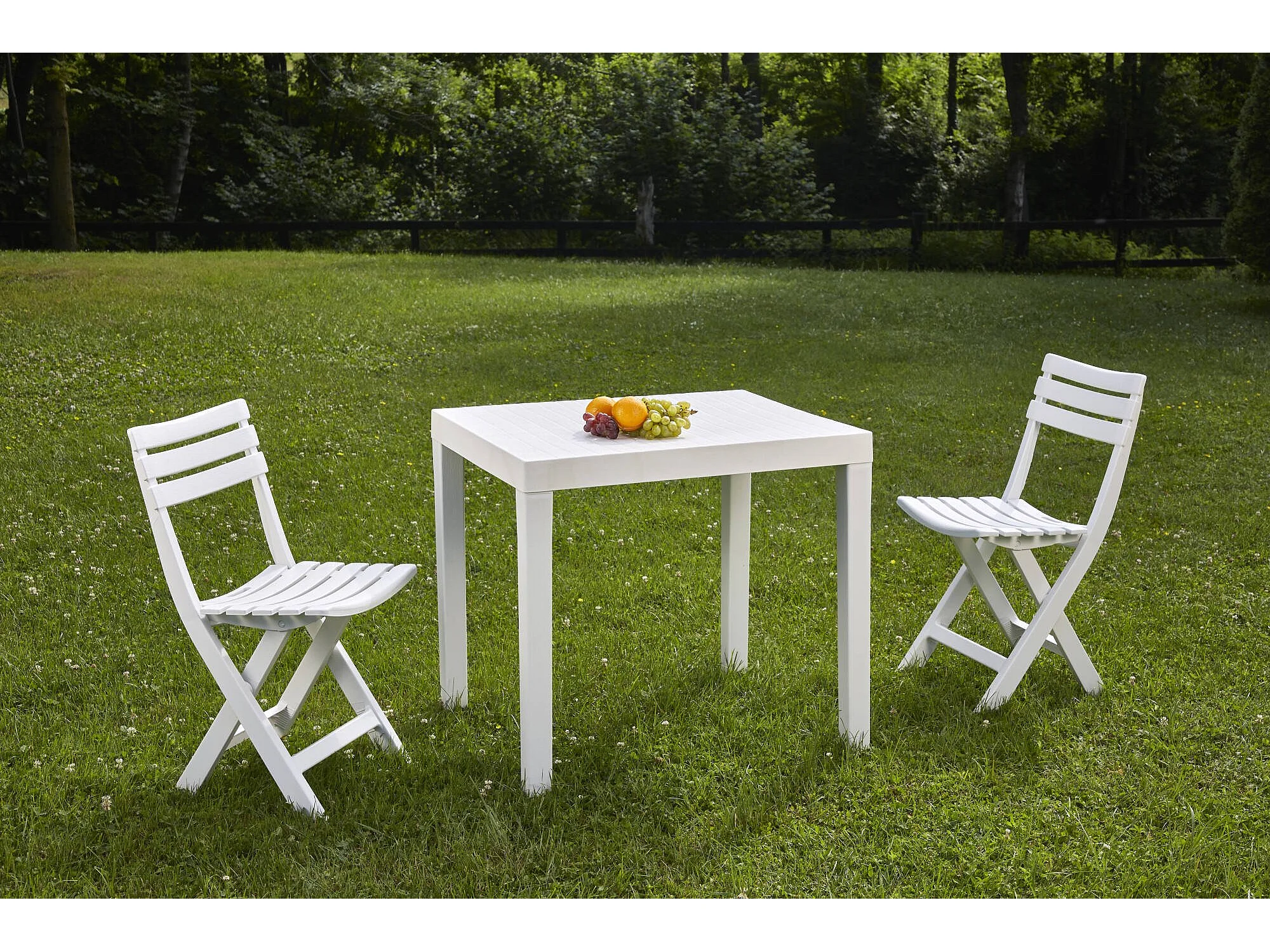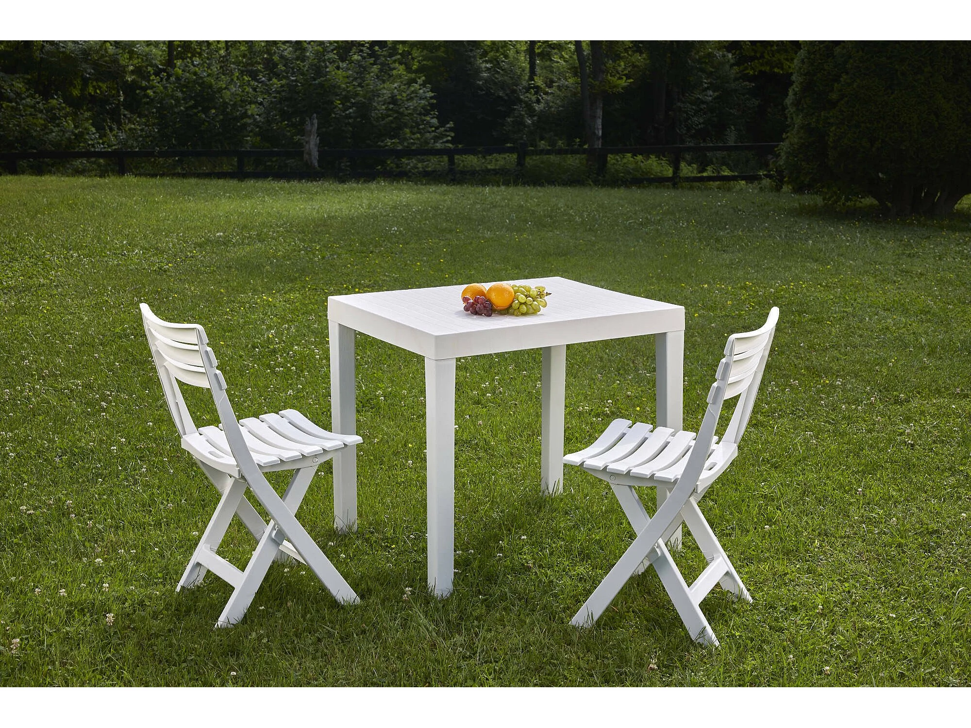 Outdoor-Lounge-Set Ortisei, Gartenset mit 1 rechteckigen Tisch und 2 Klappstühlen, Pic Nic Indoor- und Outdoor-Set, 100 % Made in Italy, Weiß