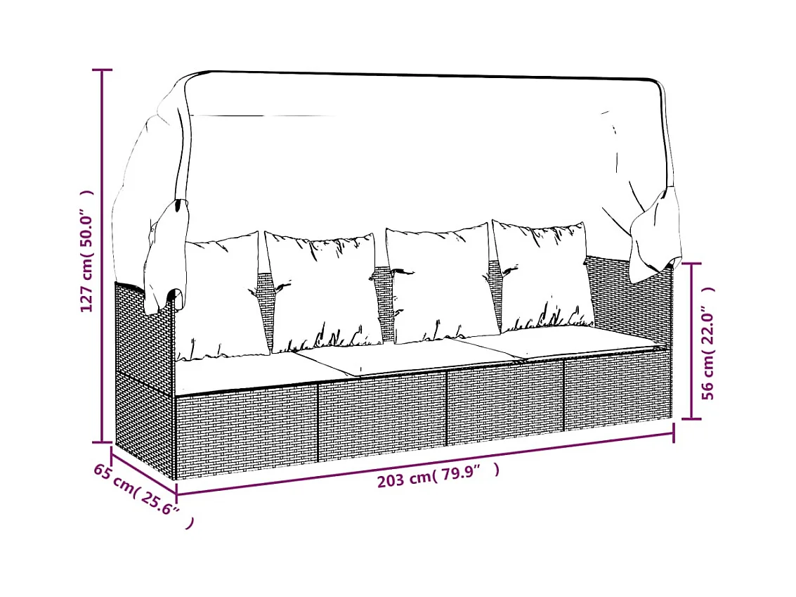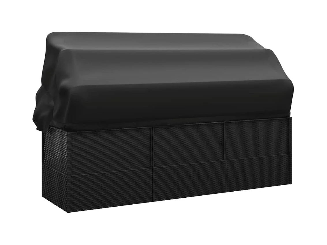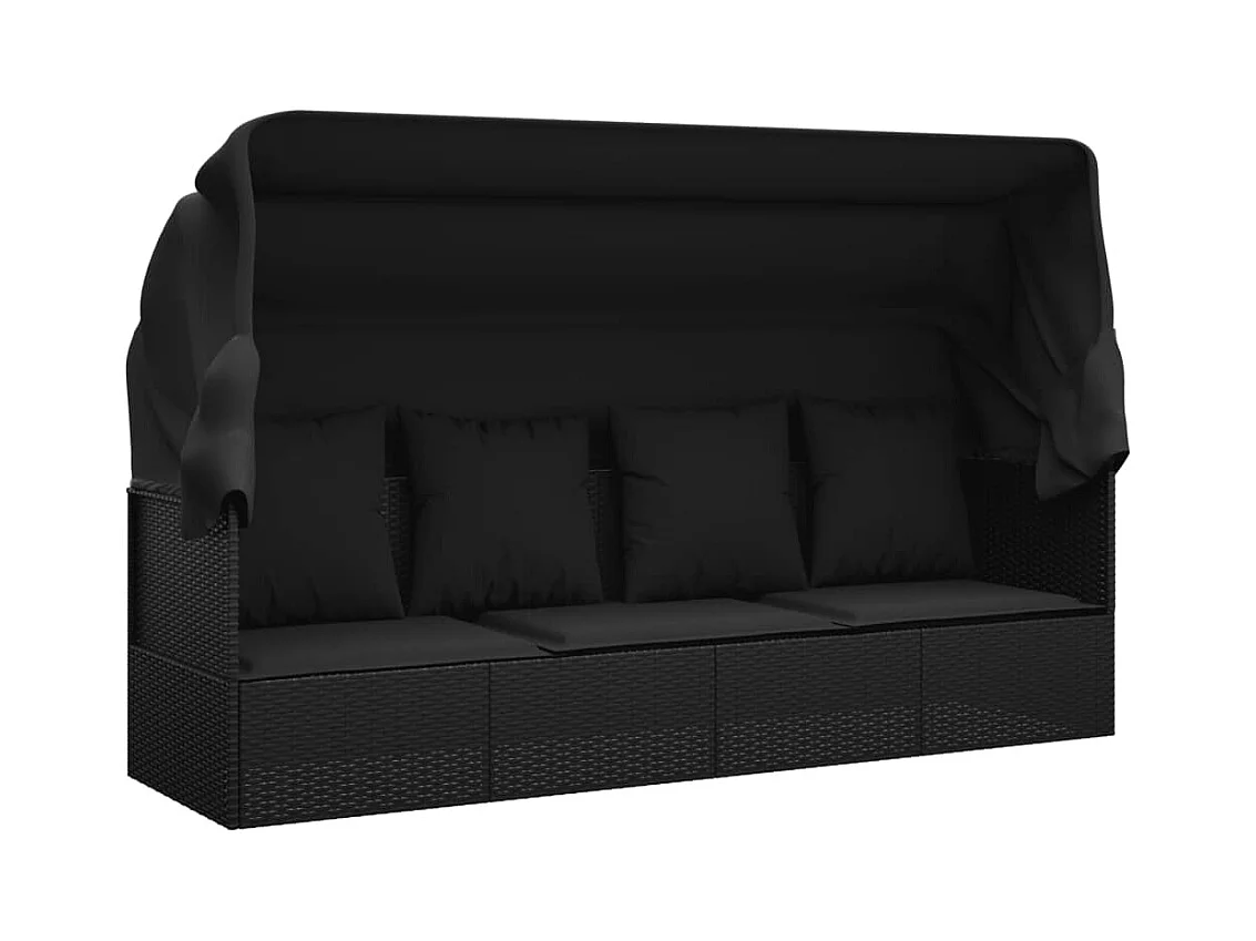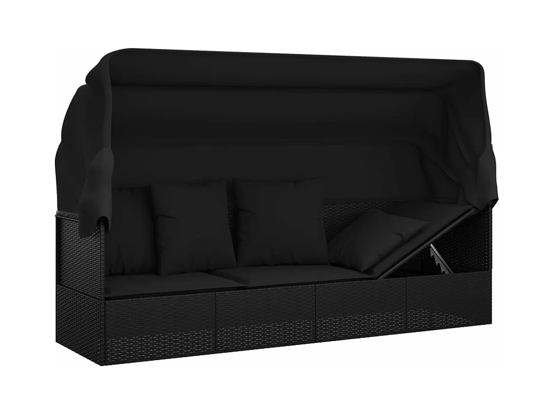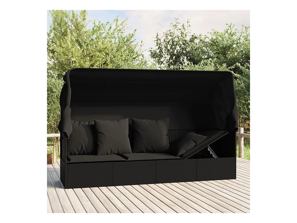 Outdoor-Loungebett mit Dach und Kissen Schwarz Poly Rattan