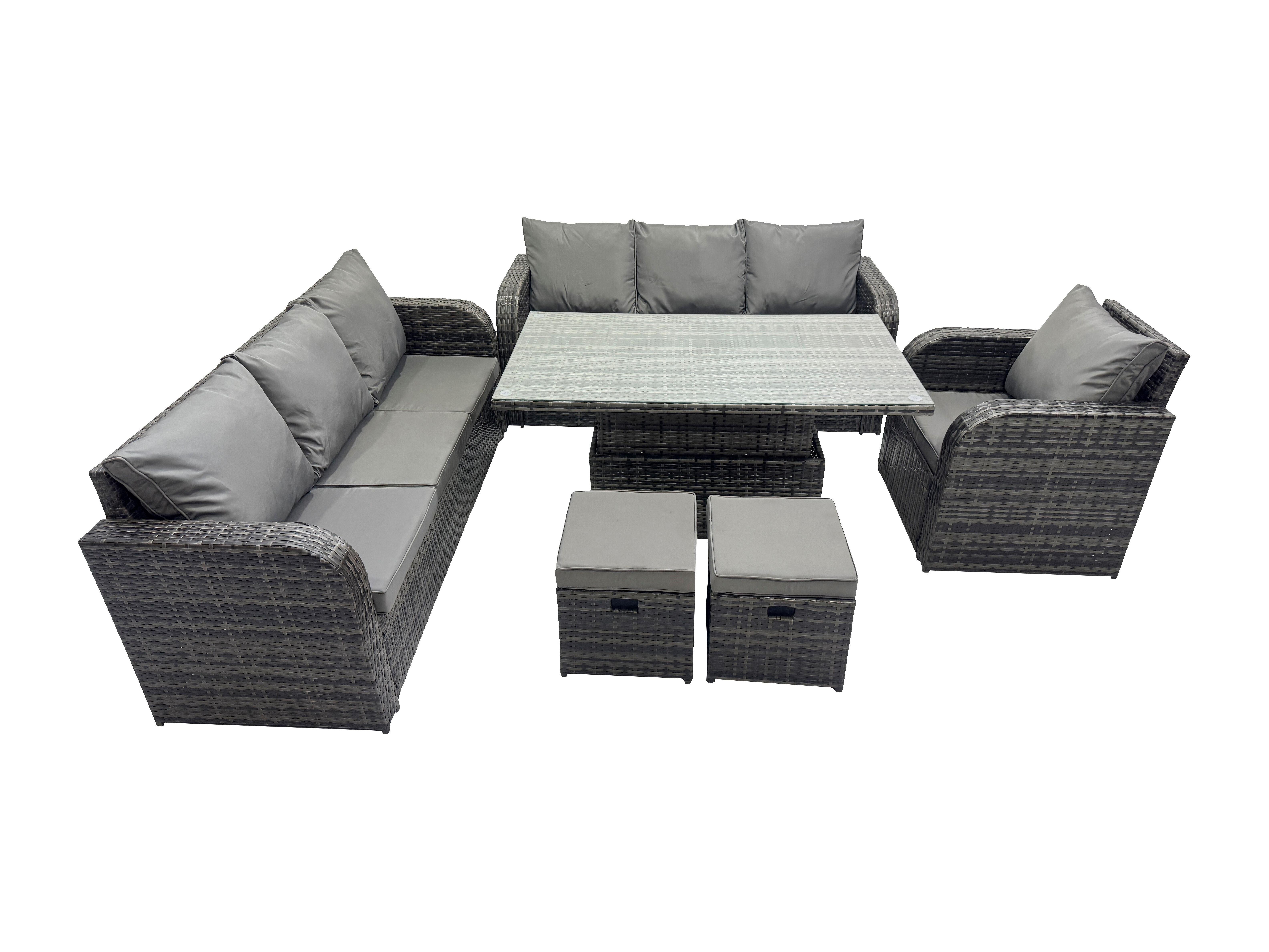 Outdoor Polyrattan Gartenmöbel Sets höhenverstellbarer Tisch Sofa Set mit Liegestühle 2 kleinen Hockern Dunkelgrau Gemischt