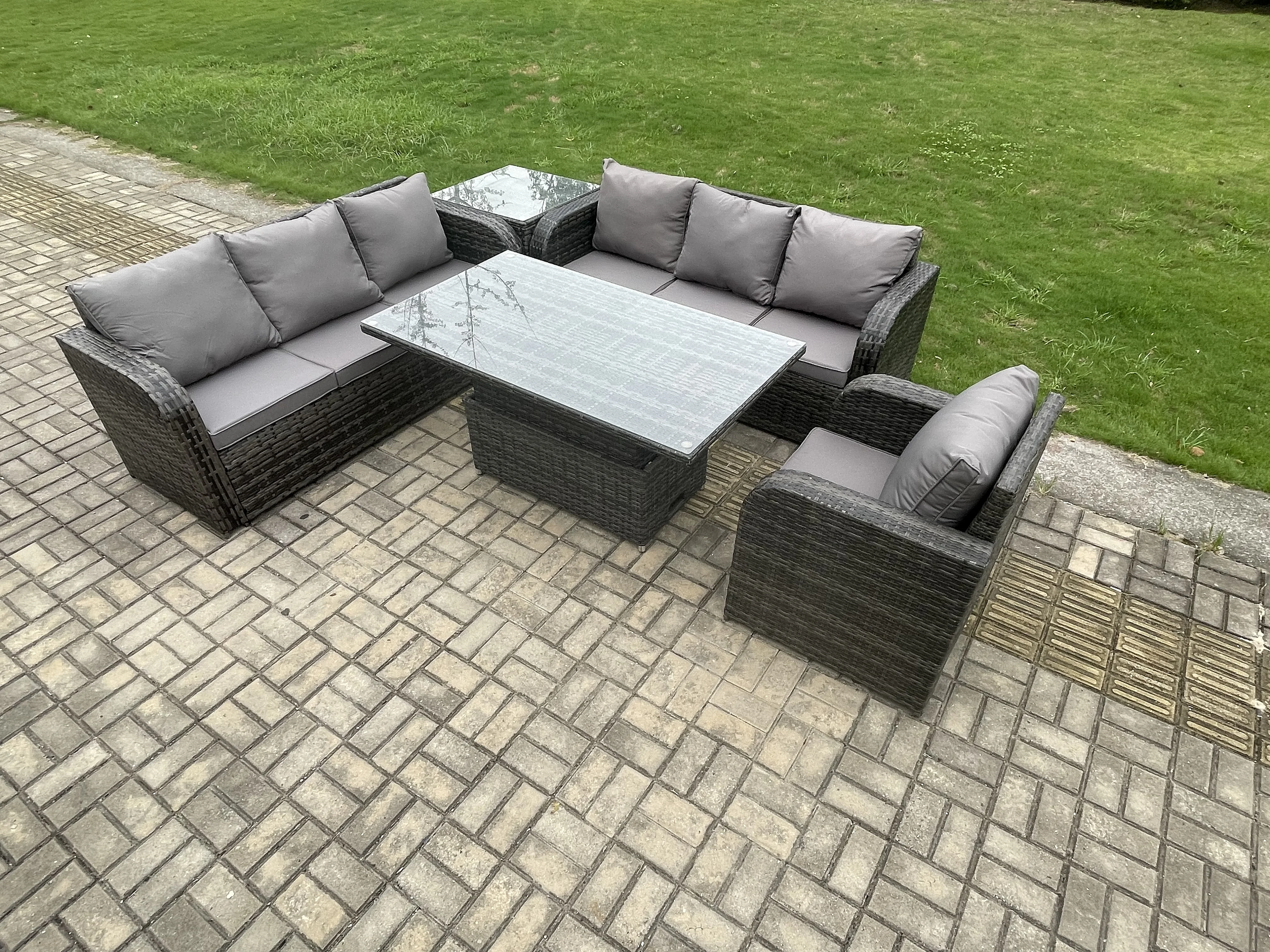 Outdoor Polyrattan Gartenmöbel Sets höhenverstellbarer Tisch Sofa Set mit Liegestühle Beistelltisch Dunkelgrau Gemischt