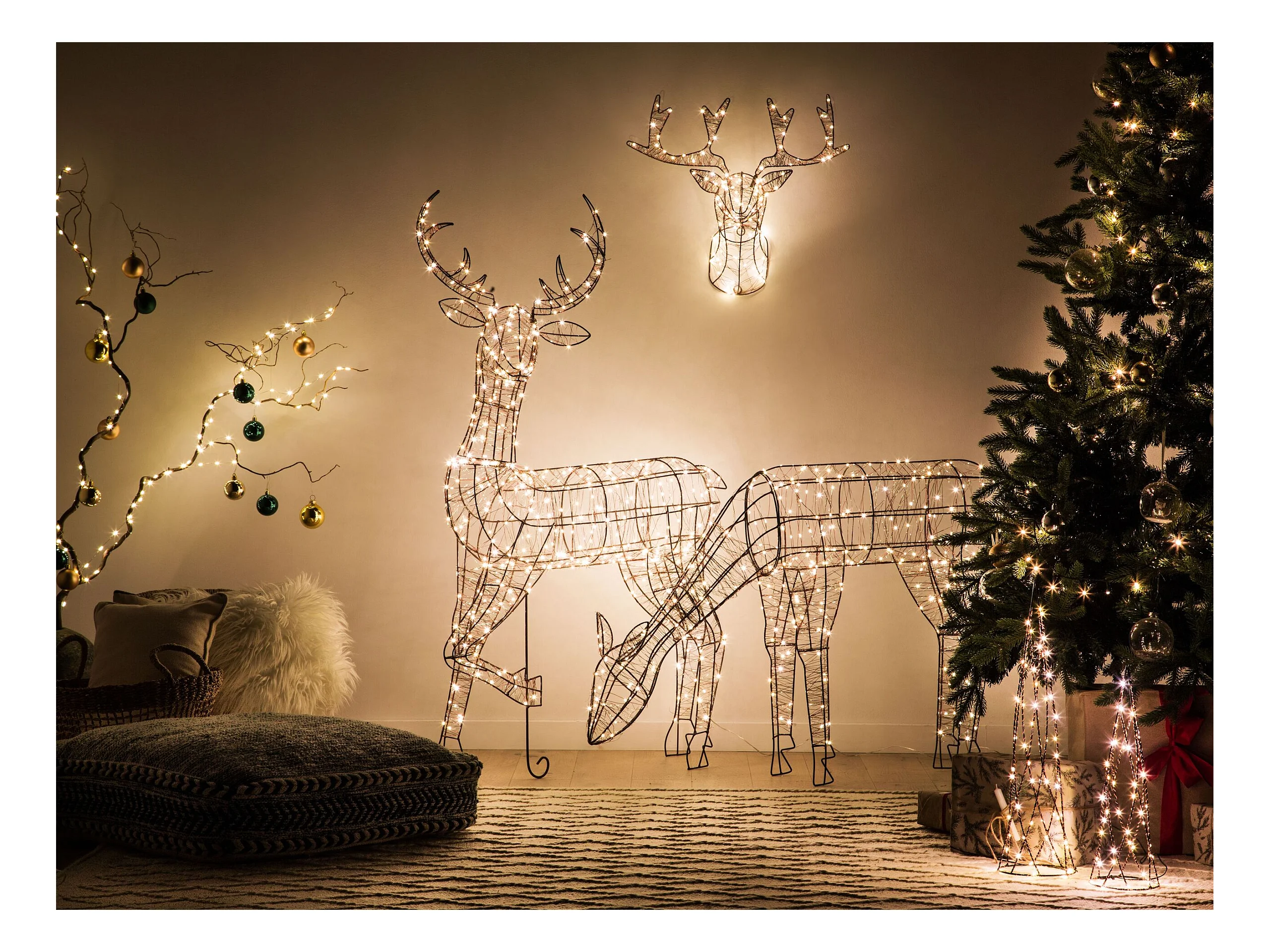 Outdoor Weihnachtsbeleuchtung LED Metall Rentierform mit Kabel schwarz Mahlatti