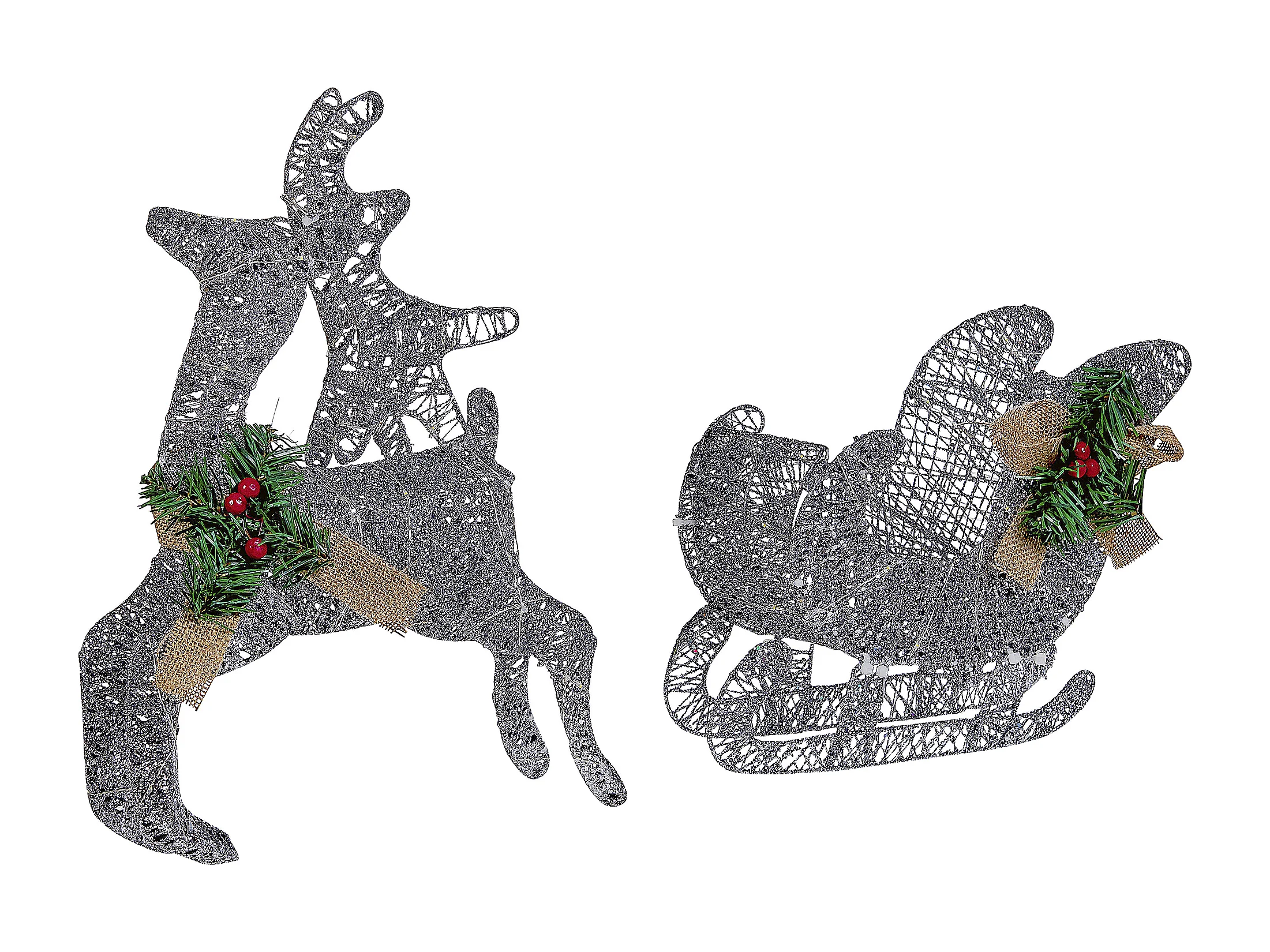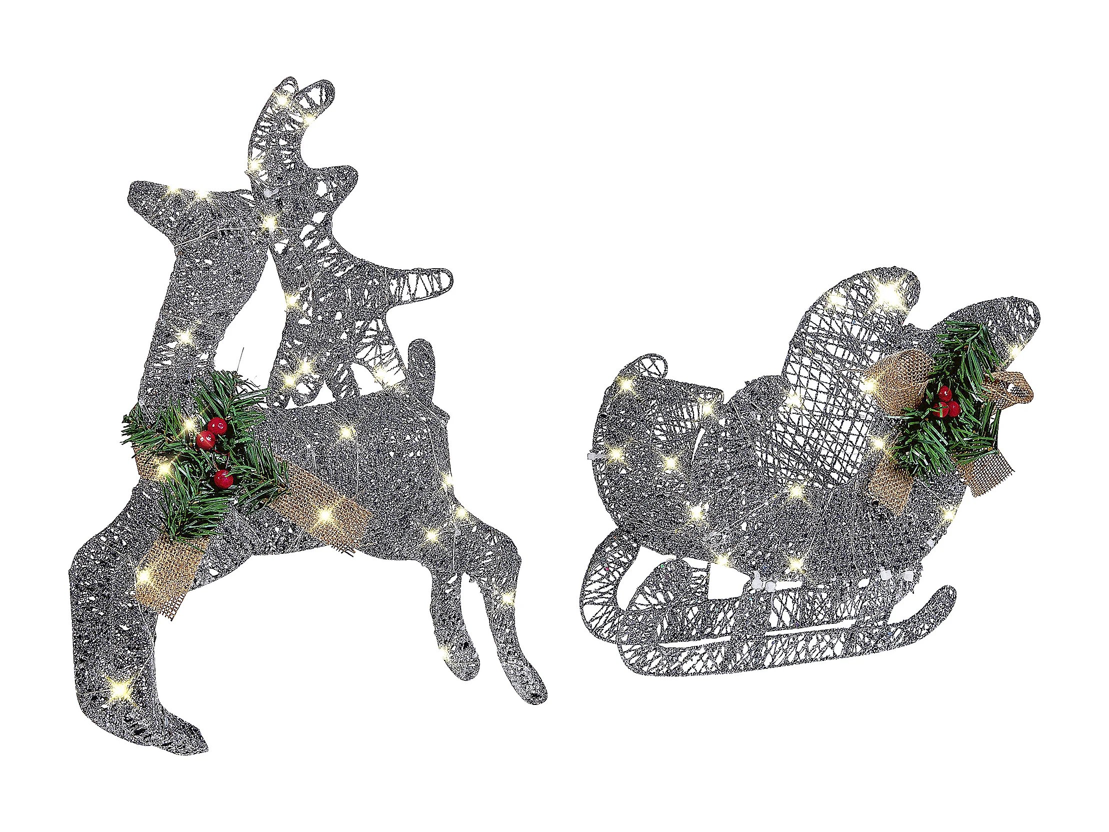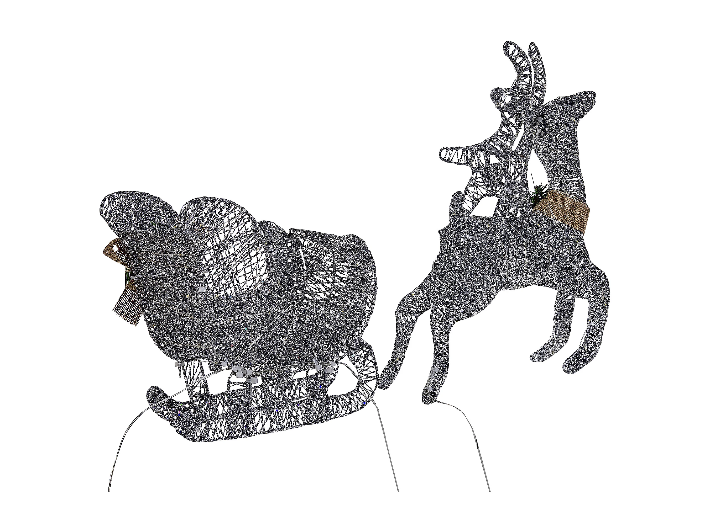 Outdoor Weihnachtsbeleuchtung LED Metall Rentier Schlitten 41 cm silber Enodak