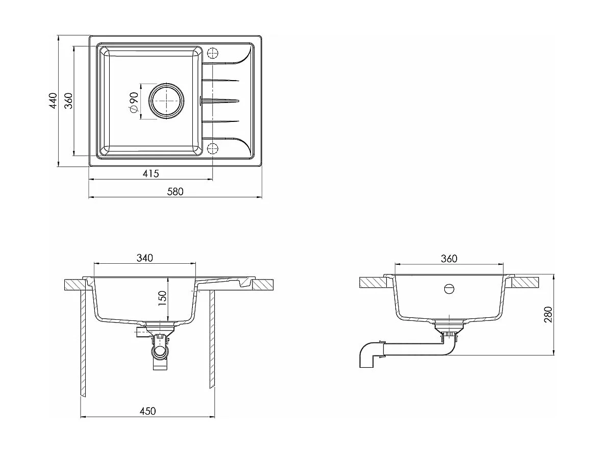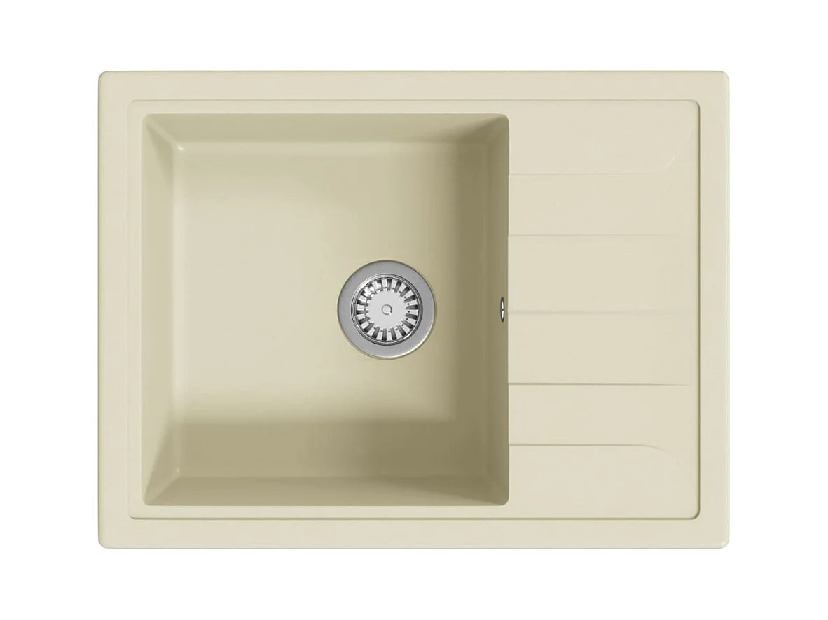 Ovale Küchenspüle aus beigefarbenem Granit mit Überlaufloch