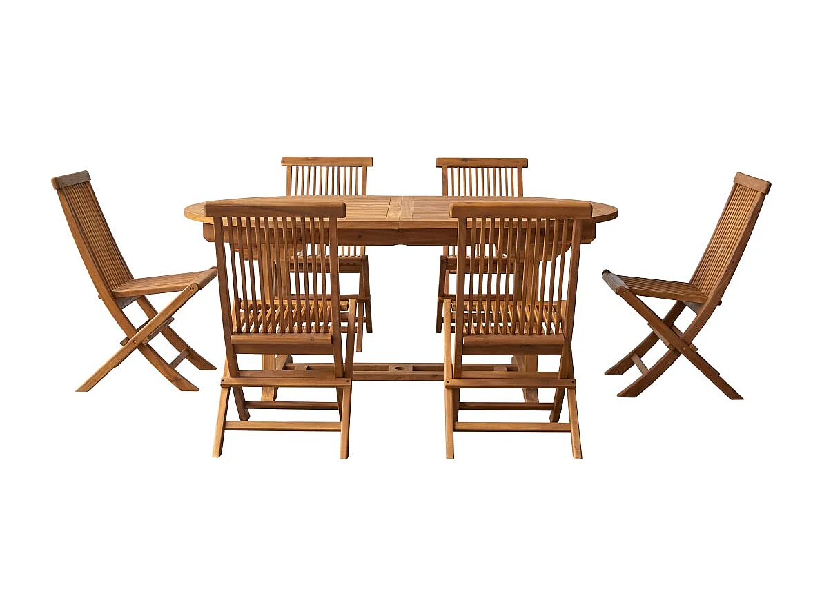 Ovale Outdoor Sitzgruppe aus massiver Akazie Capri 180 6 Stühle