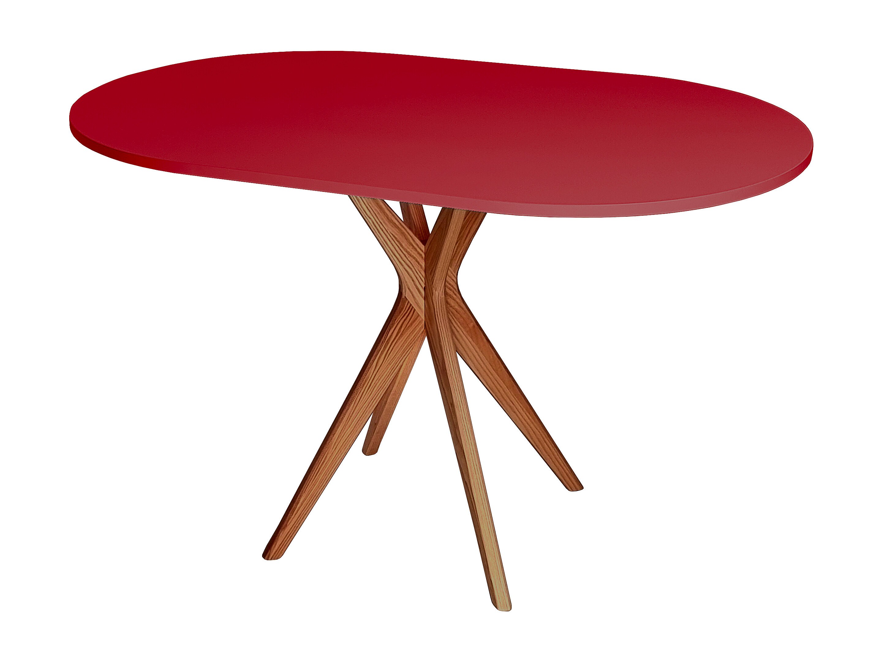 Ovaler Esstisch 75x100cm Jubi Rot Eichenbeinen
