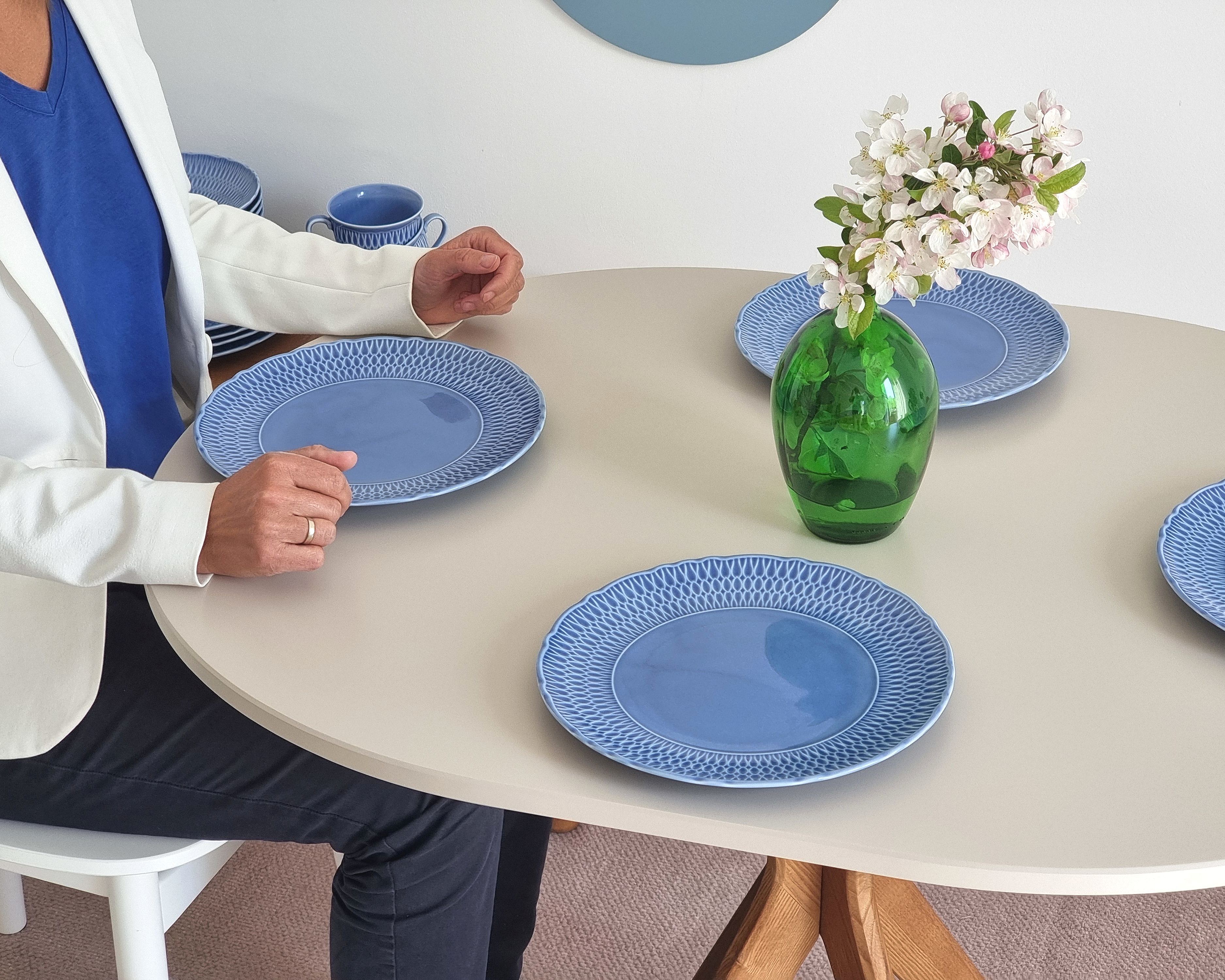 Ovaler Esstisch 75x100cm Jubi Taubenblau Eichenbeinen