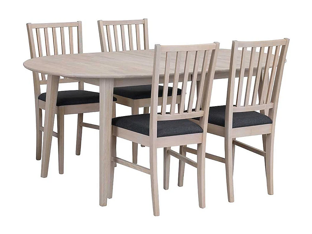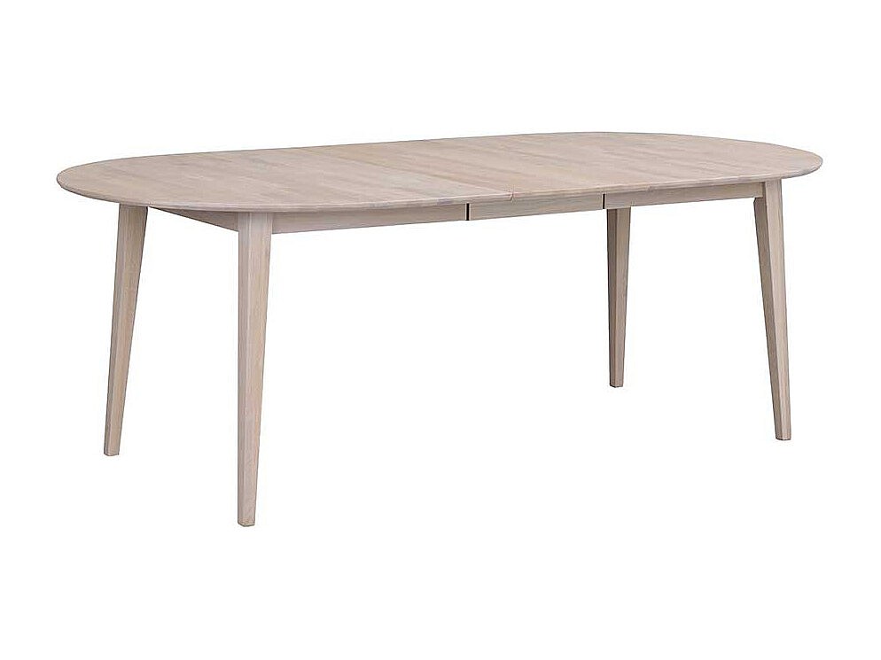 Ovaler Esstisch aus Eiche massiv in White Wash Optik ausziehbar