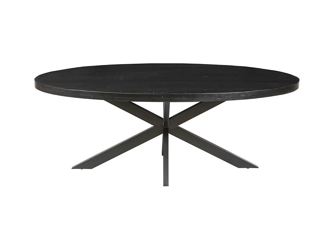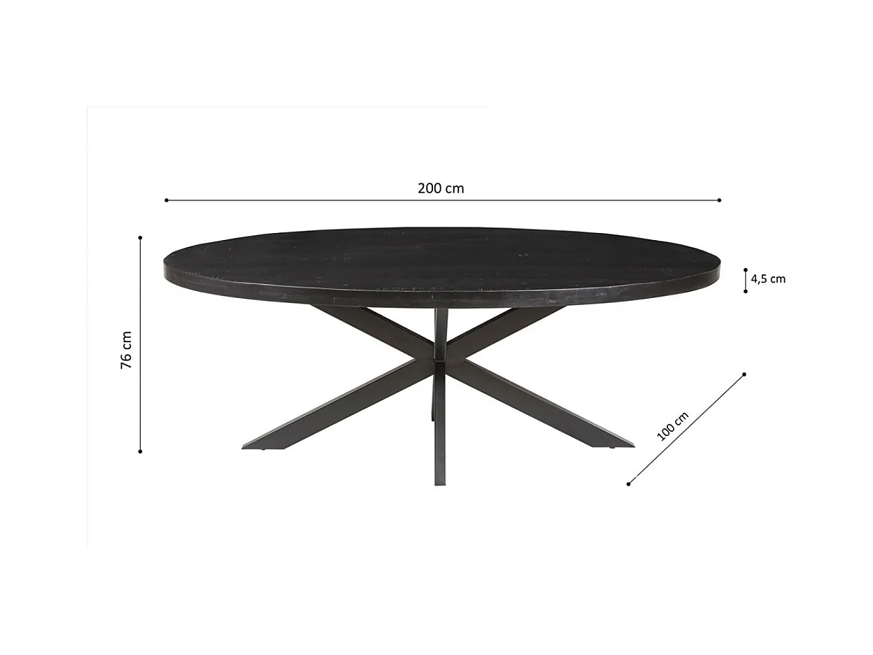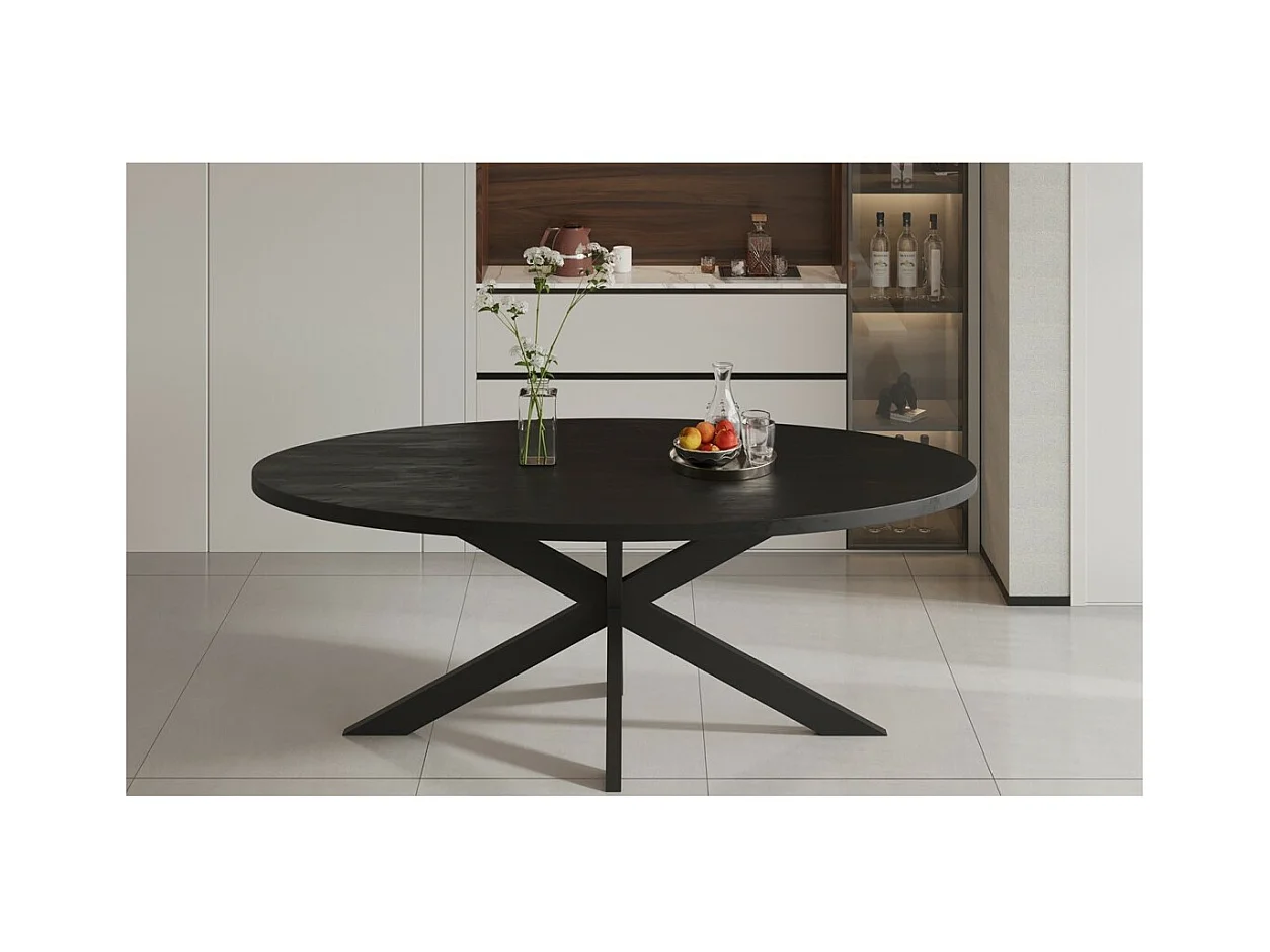 Ovaler Esstisch BOURGIA aus massivem schwarzen Mangolienholz, ideal für ein gemütliches Esszimmer.