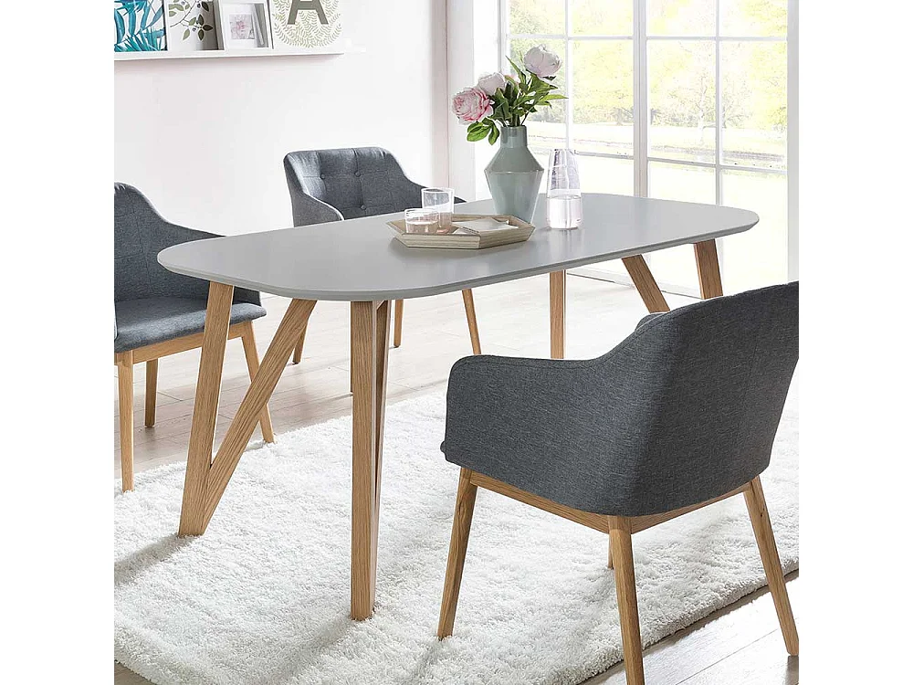 Ovaler Esszimmertisch in Grau 4-Fußgestell aus Eichenholz