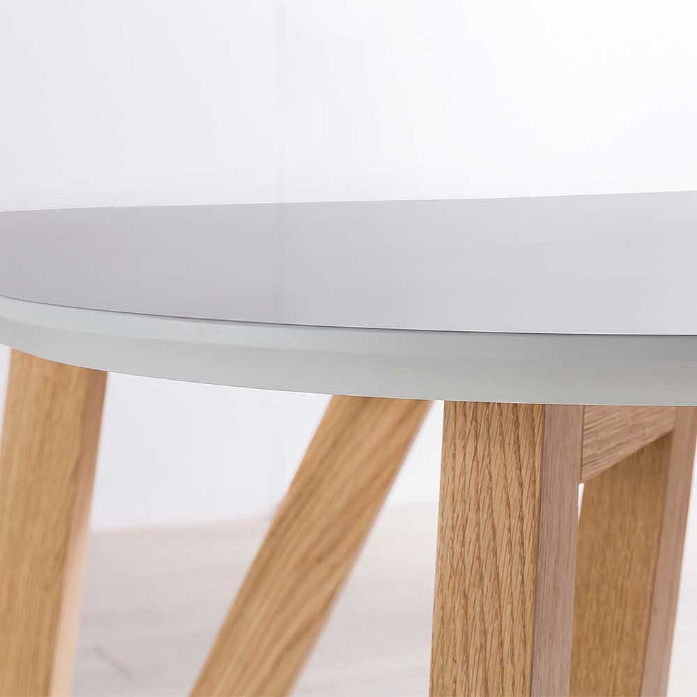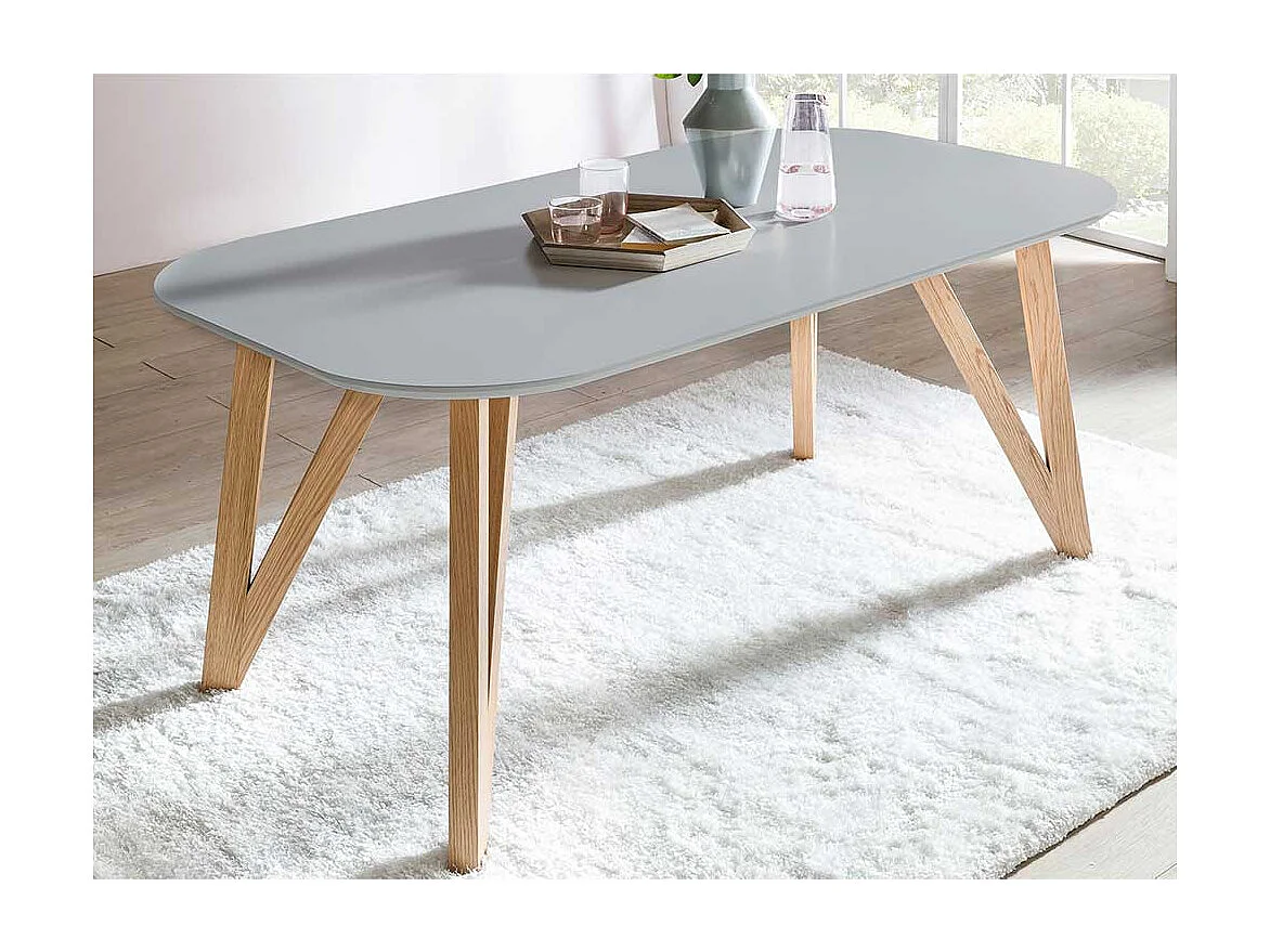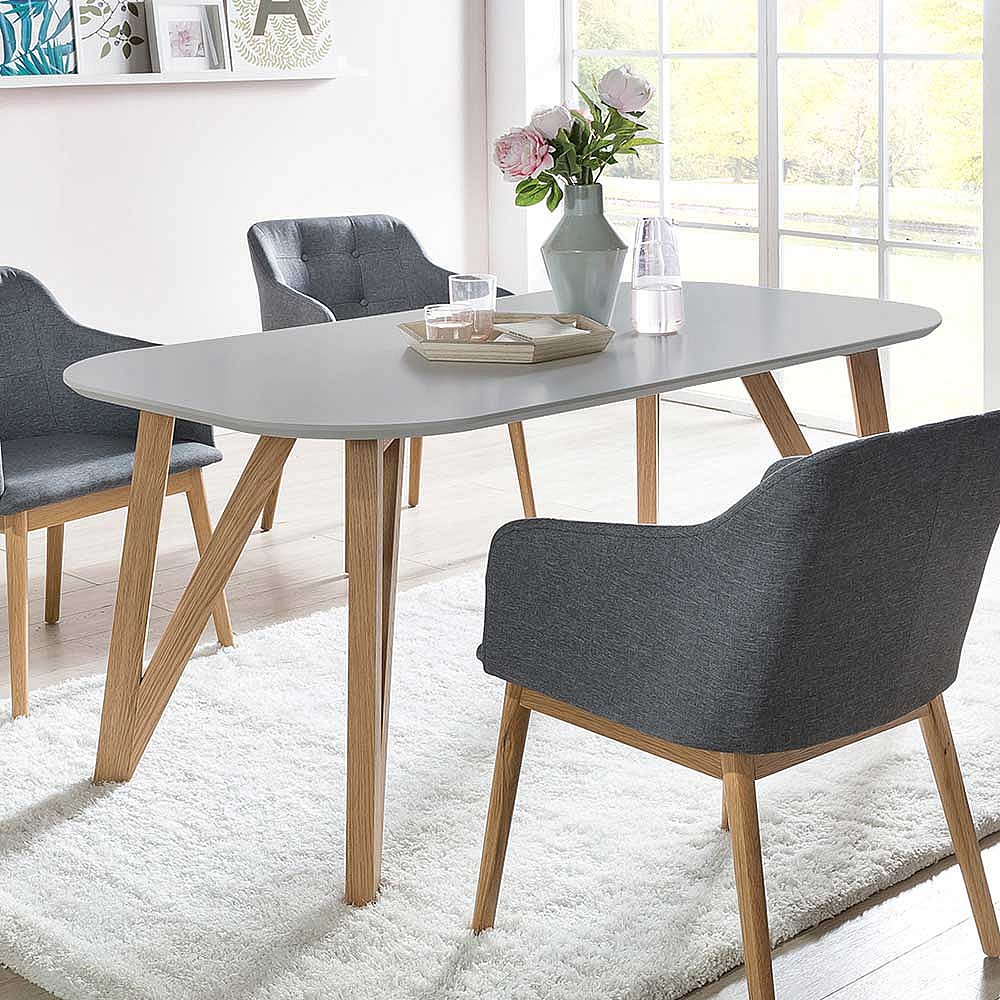 Ovaler Esszimmertisch in Grau 4-Fußgestell aus Eichenholz
