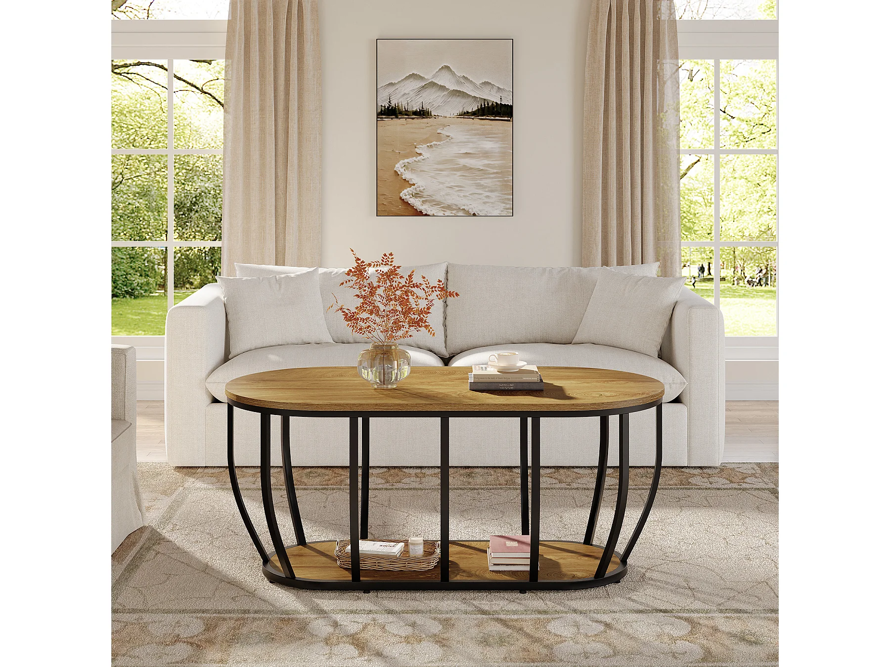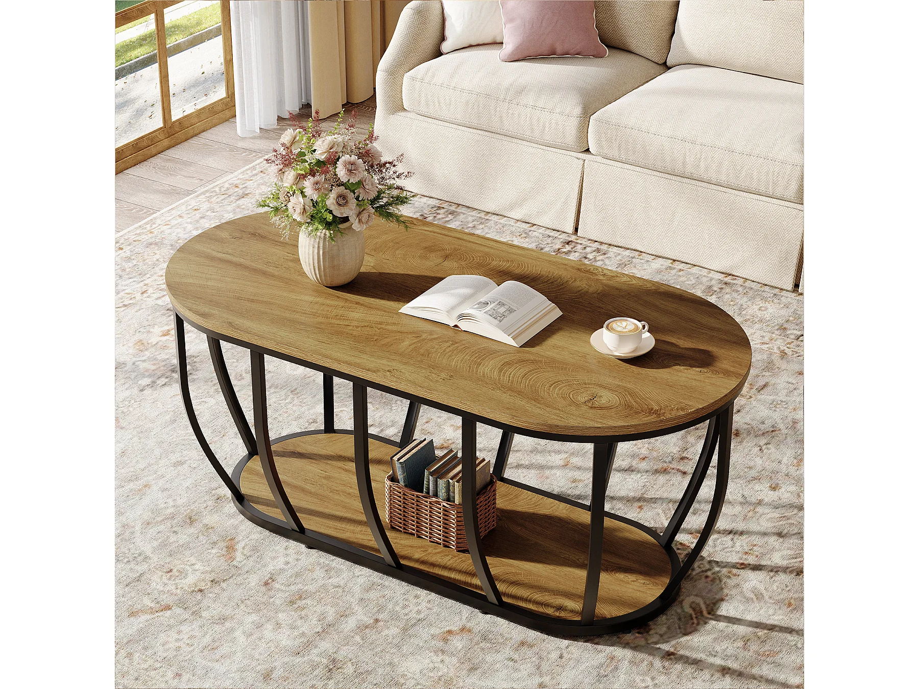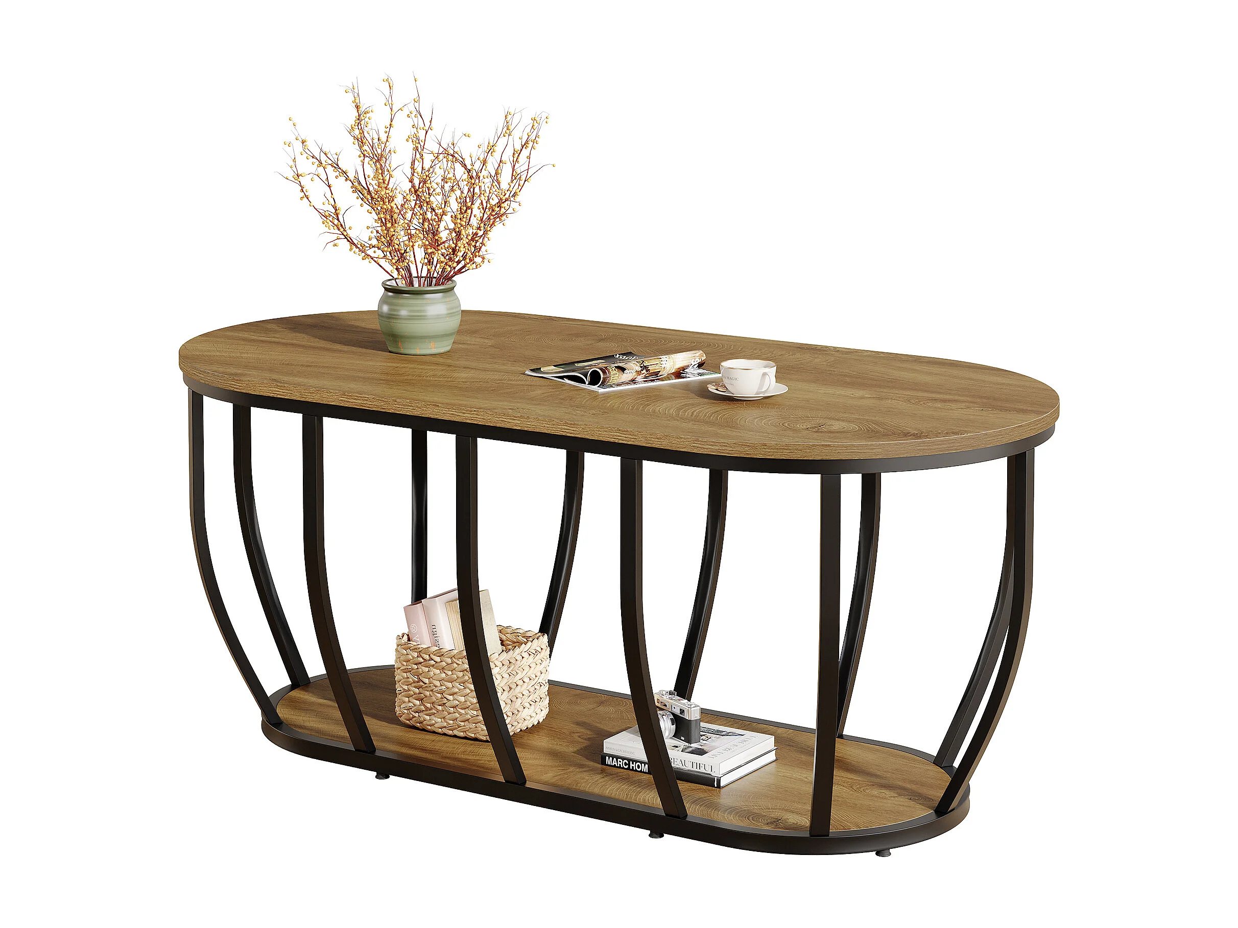 Ovaler Industrie-Kaffeetisch mit 2-fach Lagerung, moderner Zentraler Cocktailtisch mit gebogenem Metallfuß