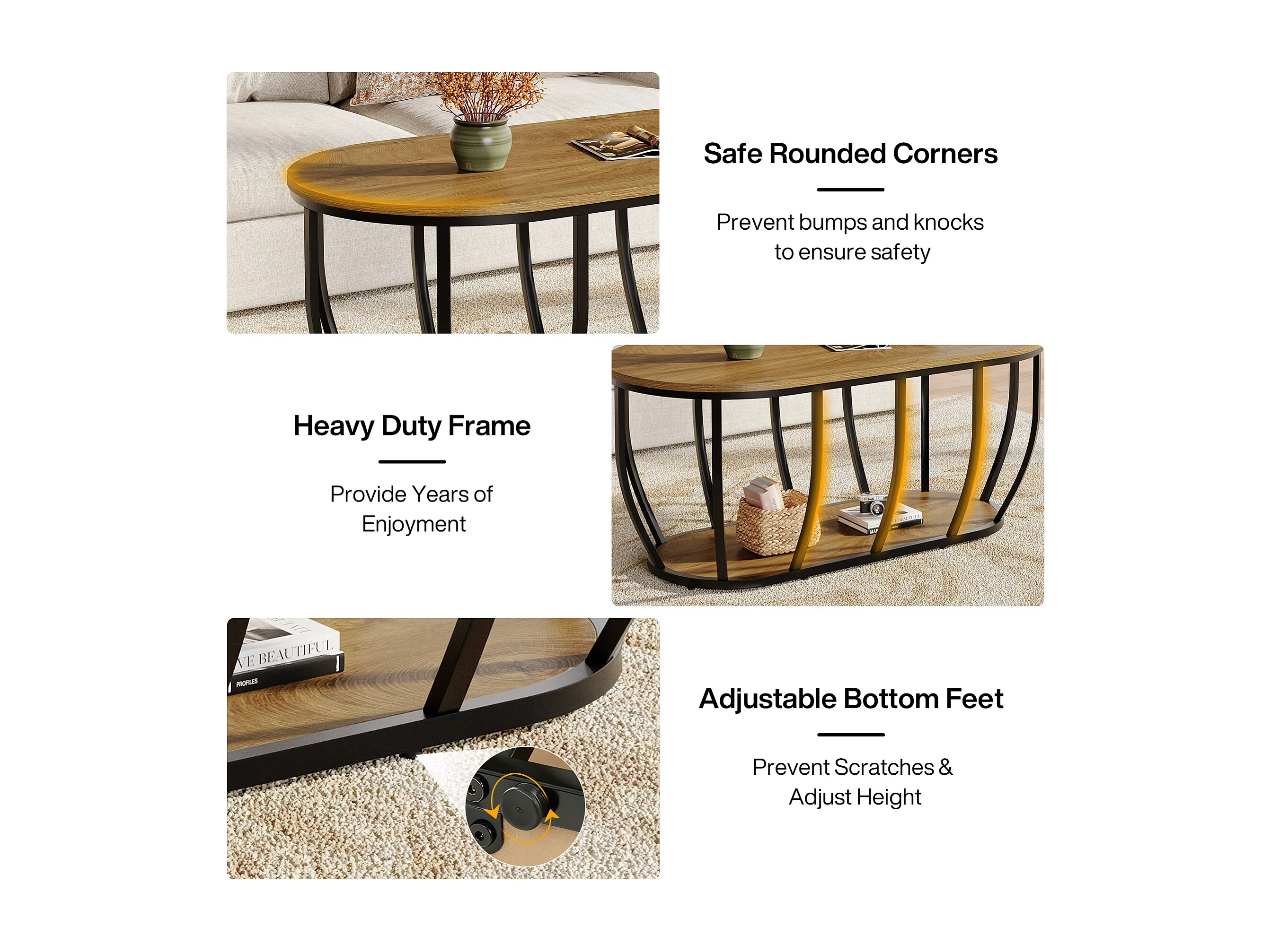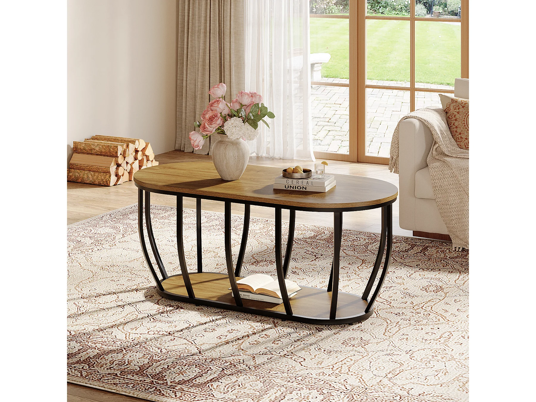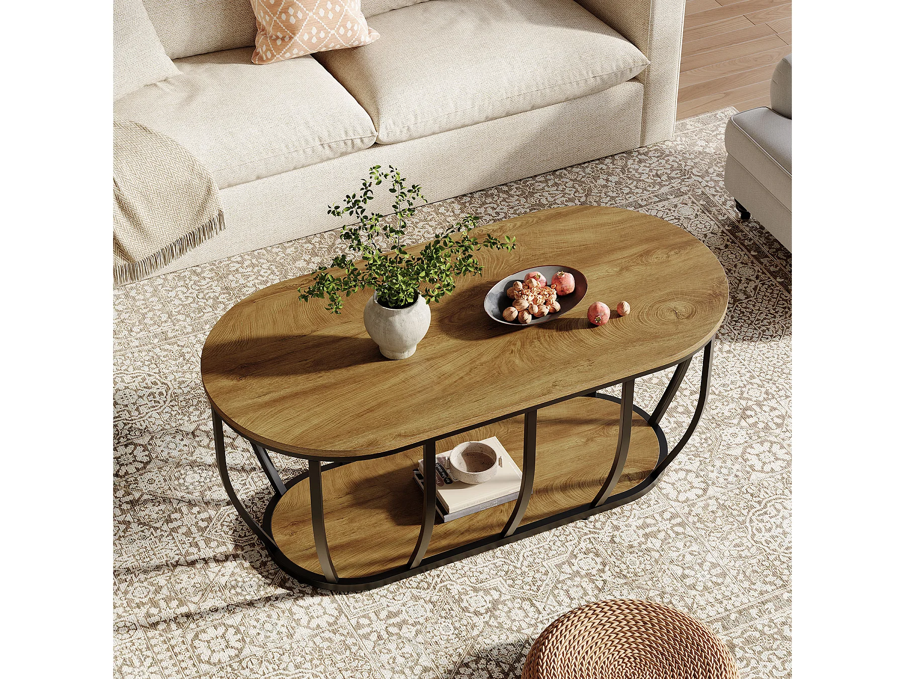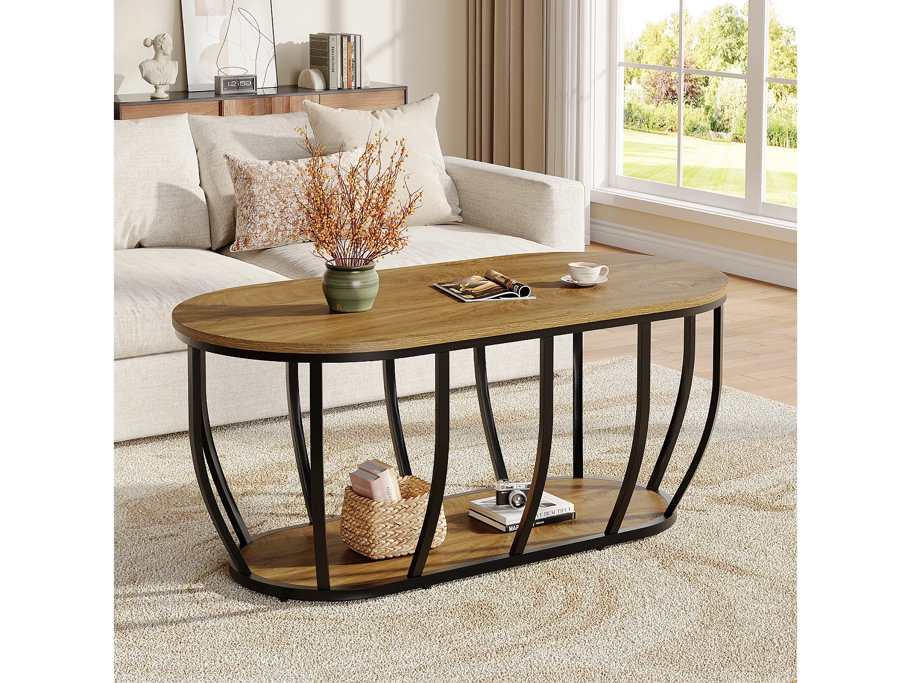 Ovaler Industrie-Kaffeetisch mit 2-fach Lagerung, moderner Zentraler Cocktailtisch mit gebogenem Metallfuß