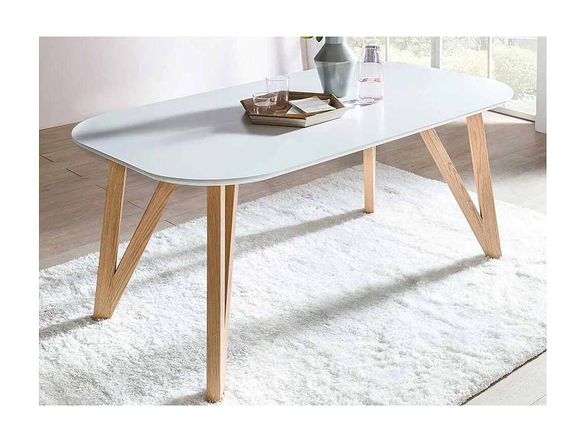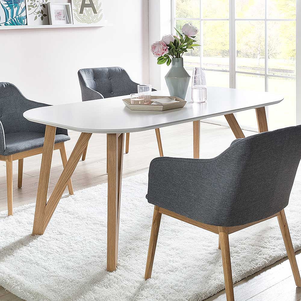 Ovaler Küchentisch in Weiß 4-Fußgestell aus Eiche Massivholz
