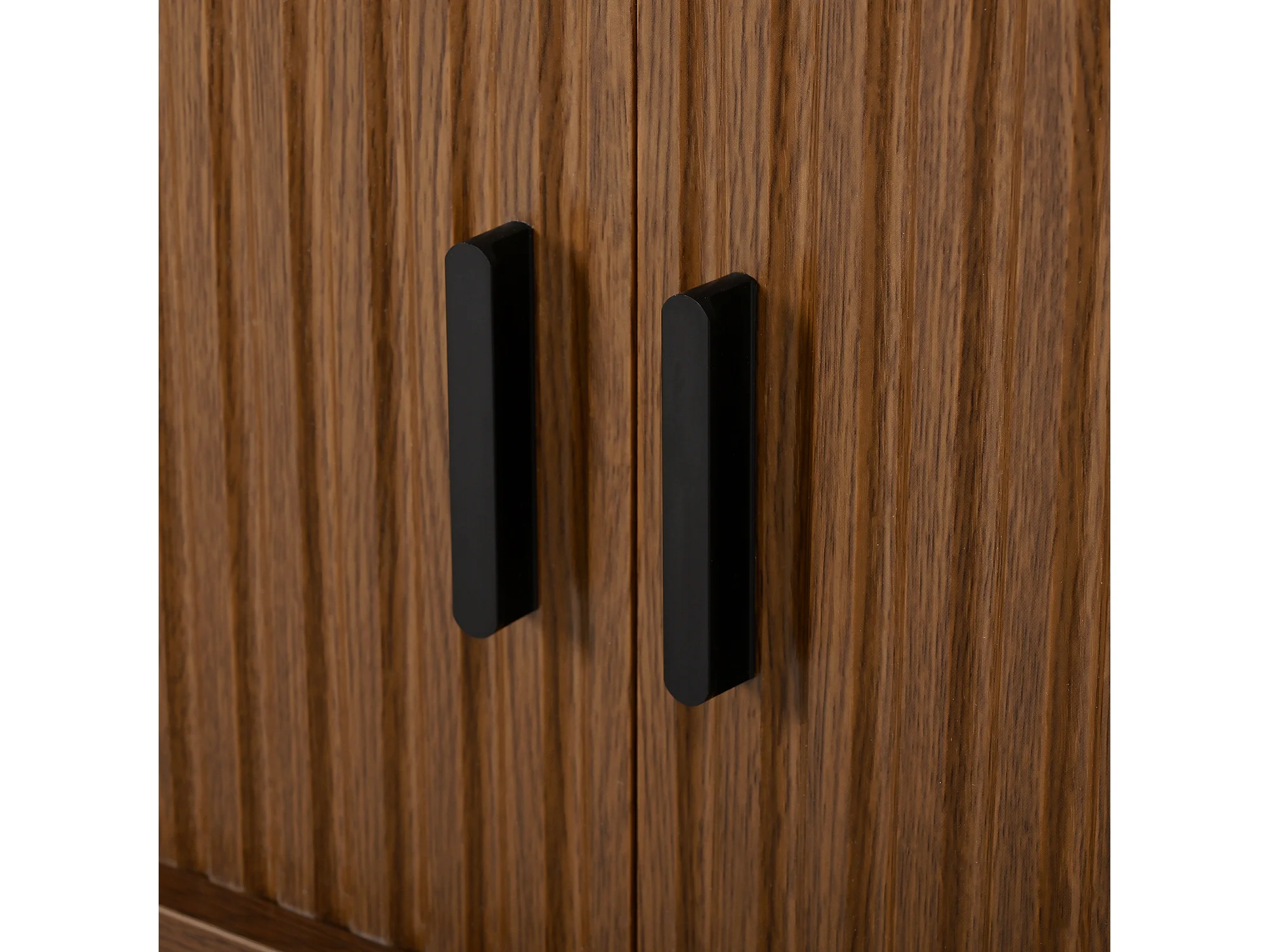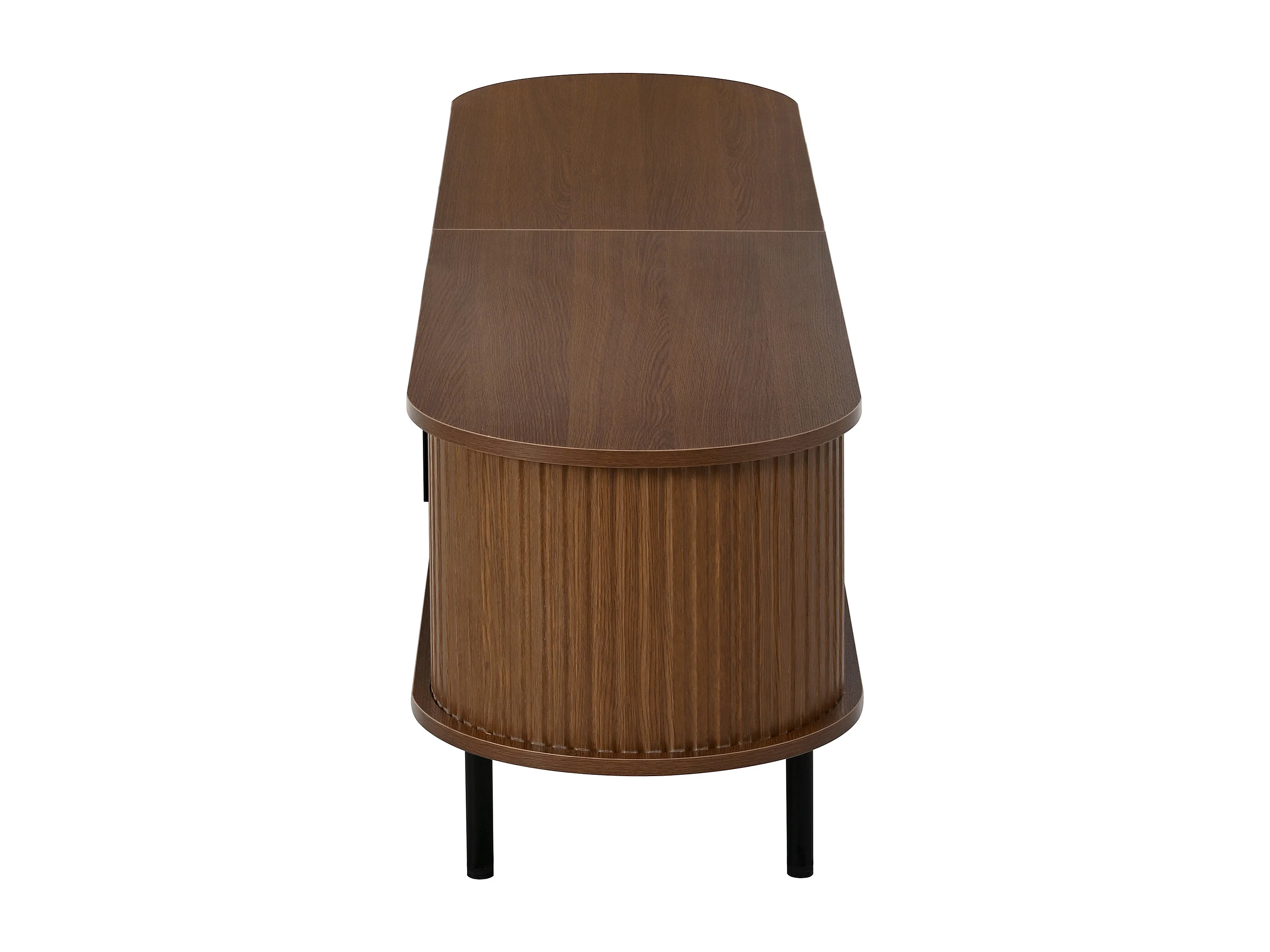 Ovaler TV-Schrank 170x40x46 cm - 2 Schiebetüren und 2 offene Regale - Metallfüße - MDF - Braun